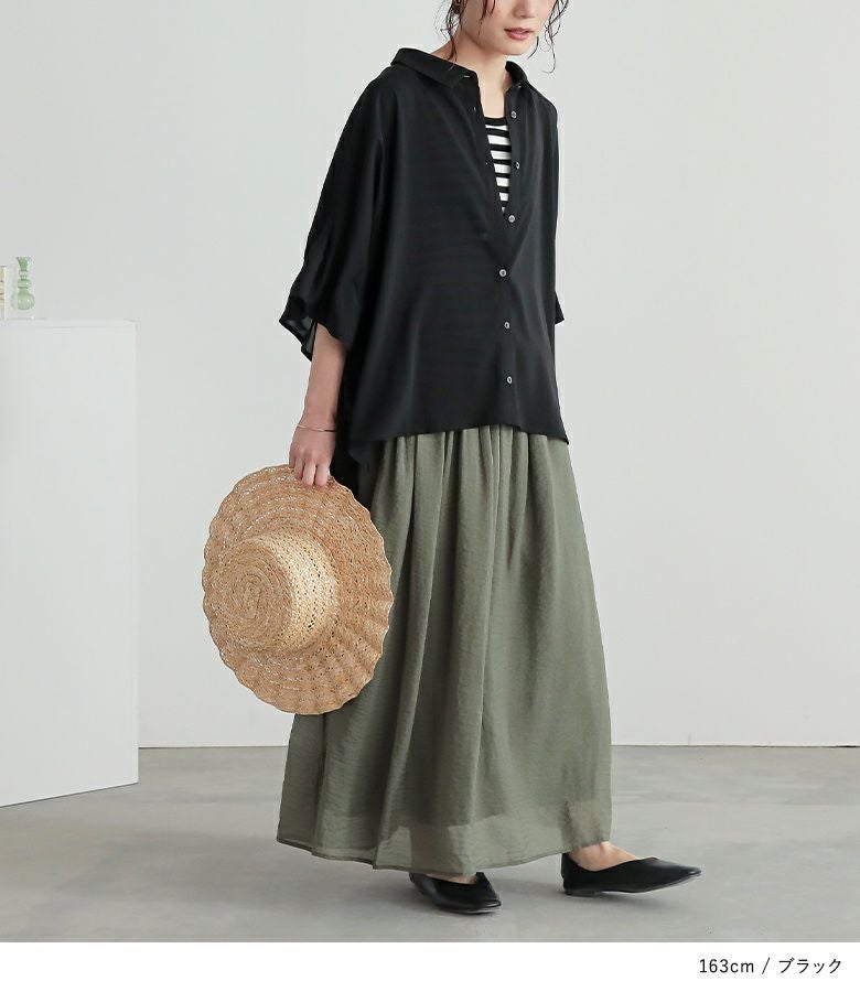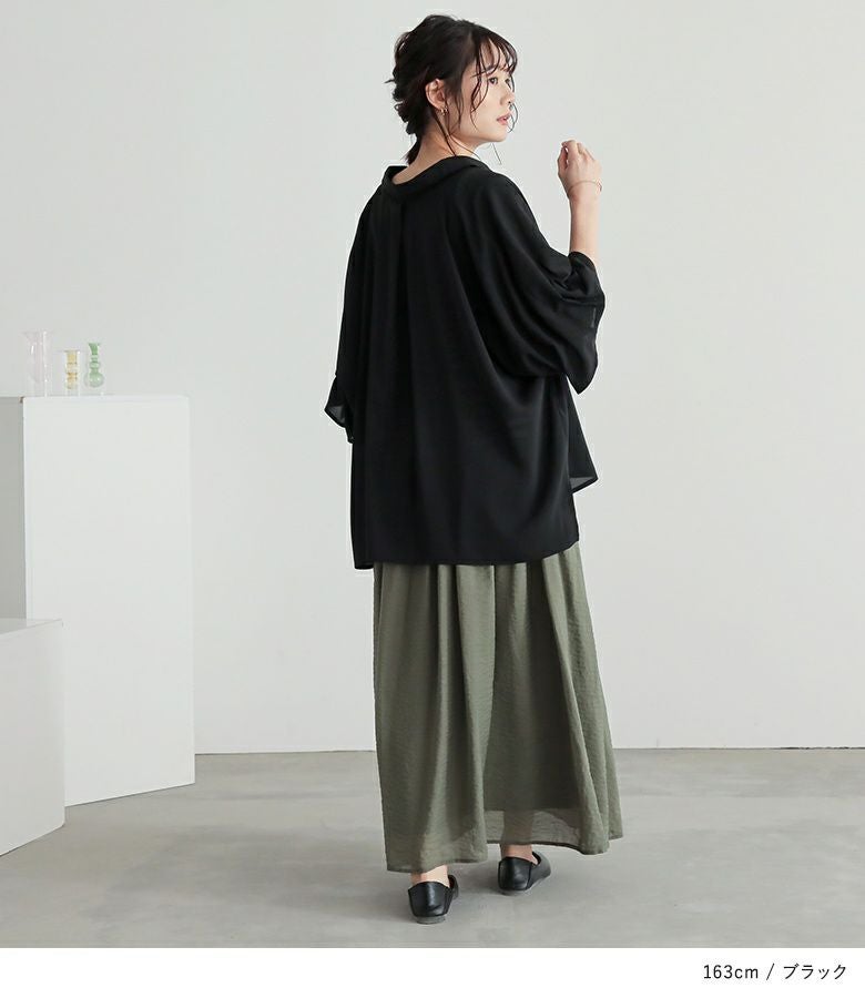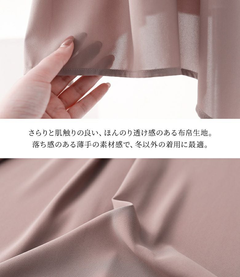 さらりとした肌触りの良い、ほんのり透け感のある布帛生地を使用。落ち感のある薄手の素材でこれからの季節に最適なitemです。