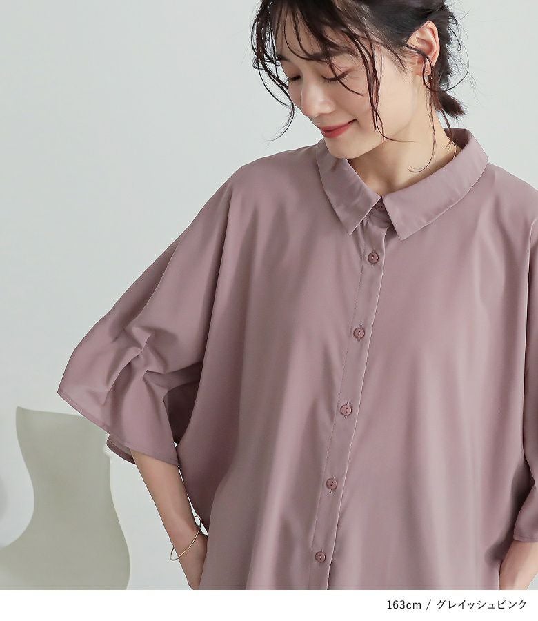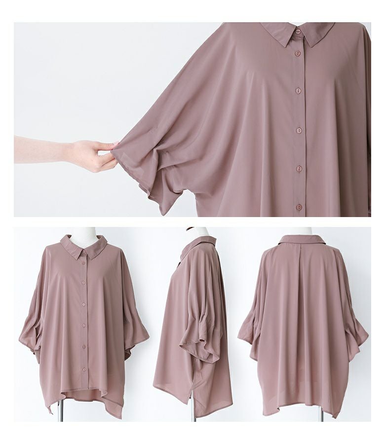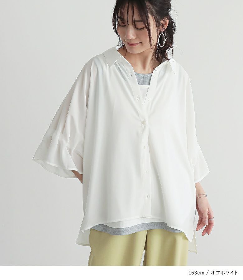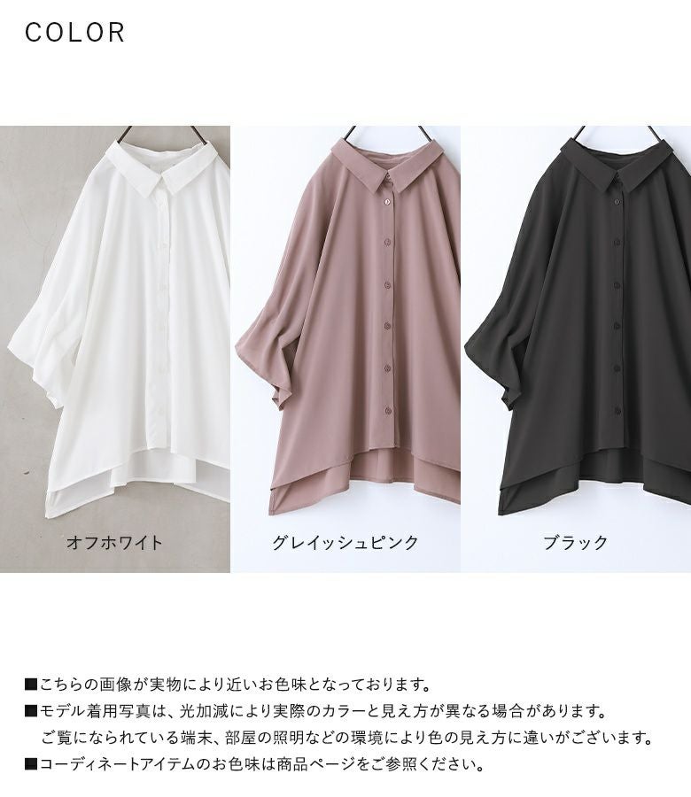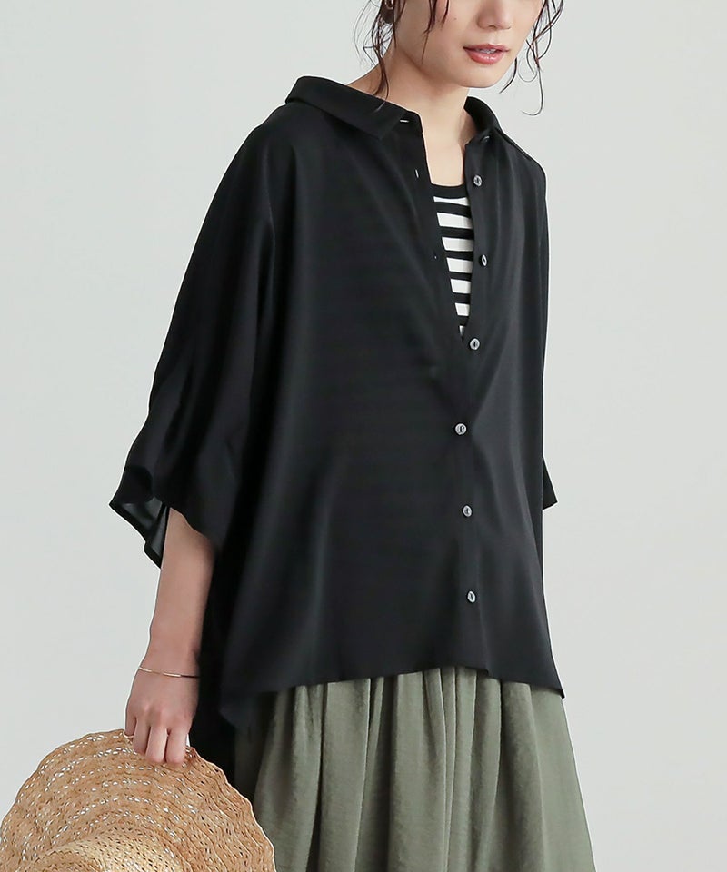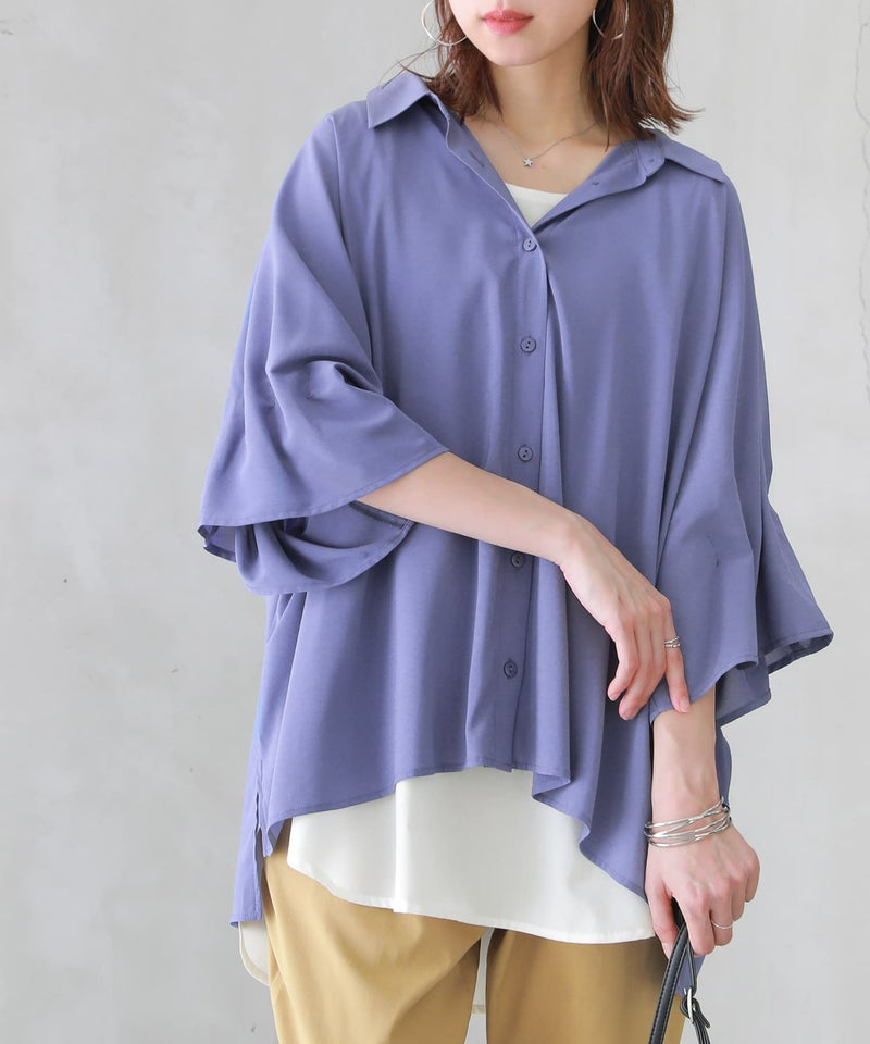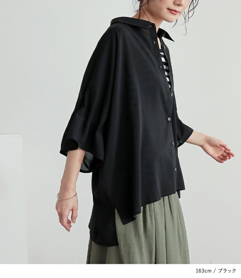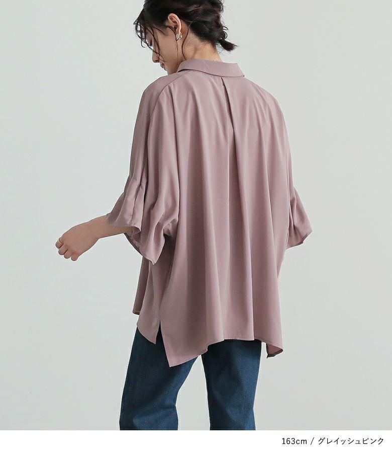ひらり袖でも甘くなりすぎないよう、シャツ襟でシャープな印象に。大人女子のお洒落を叶えてくれる一着。