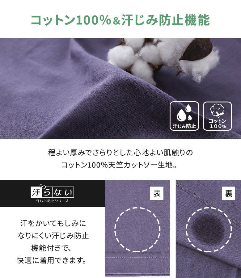 汗ばむ時期をより快適に過ごせるように、肌触りの良いコットン100%素材に加工を施したこだわりの生地を使用。汗ジミ防止加工でずっと快適に、安心してご着用いただけます。