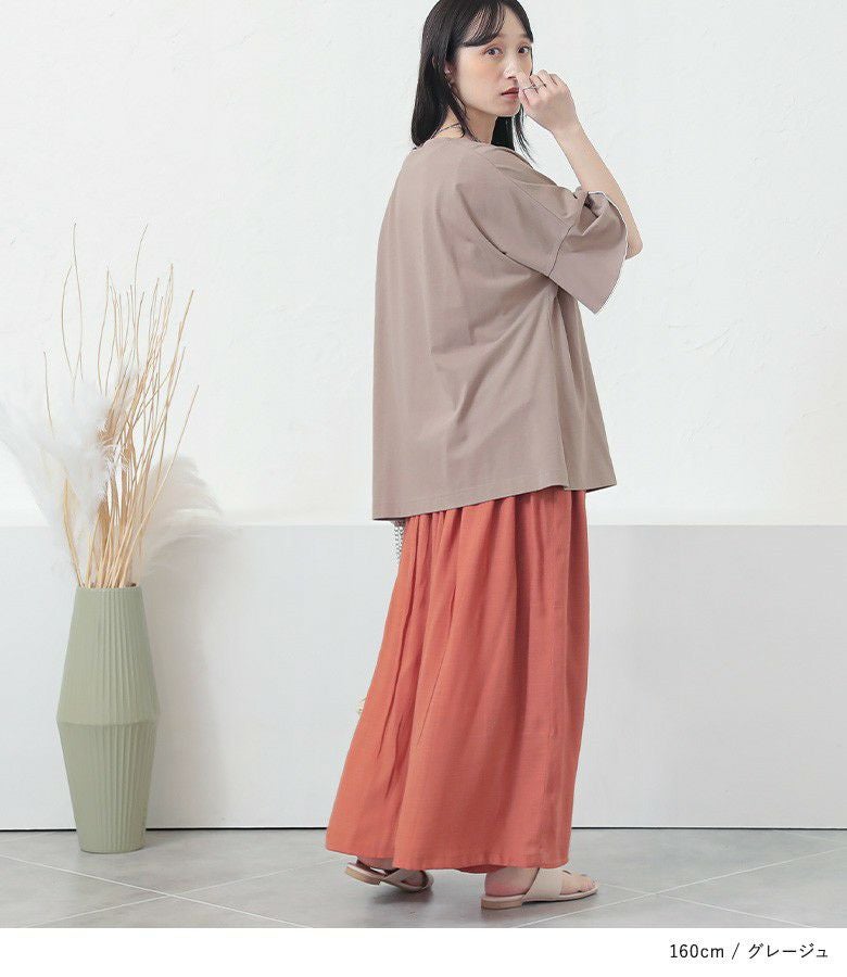デコルテのキレイ見せが実現するUネック。袖口の配色パイピングがアクセントになるフレアスリーブがこなれ感をプラスしてくれます。汗を気にせずお洒落を楽しめるのも嬉しいポイント♪