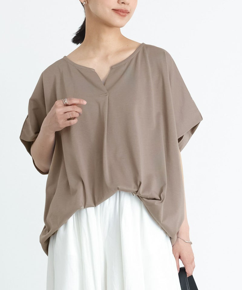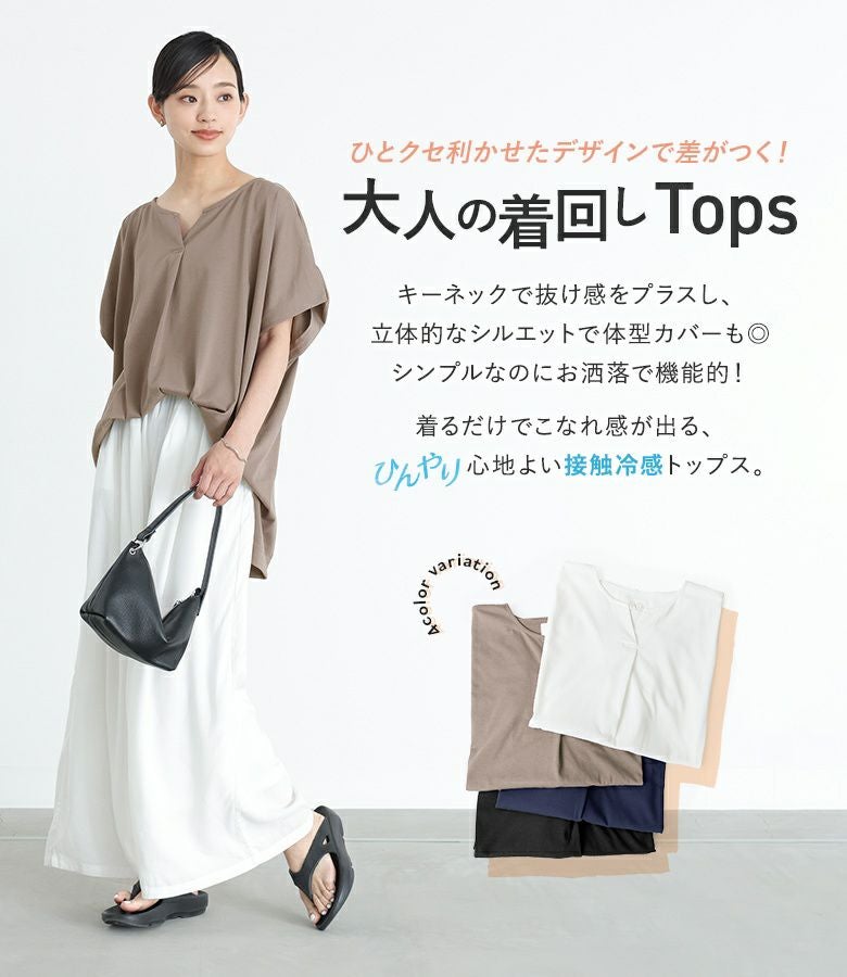 着るだけでこなれ感が出る、ひんやり心地よい接触冷感トップス。