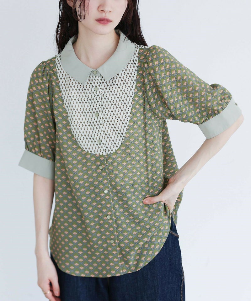 ≪somari imagination≫レトロ柄ボザム切替ブラウスです。