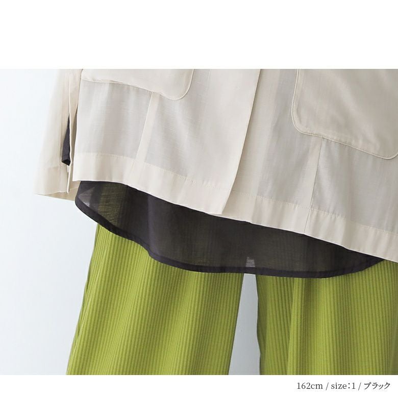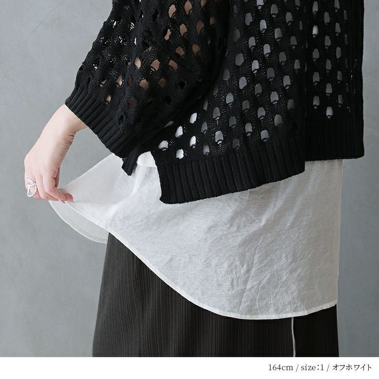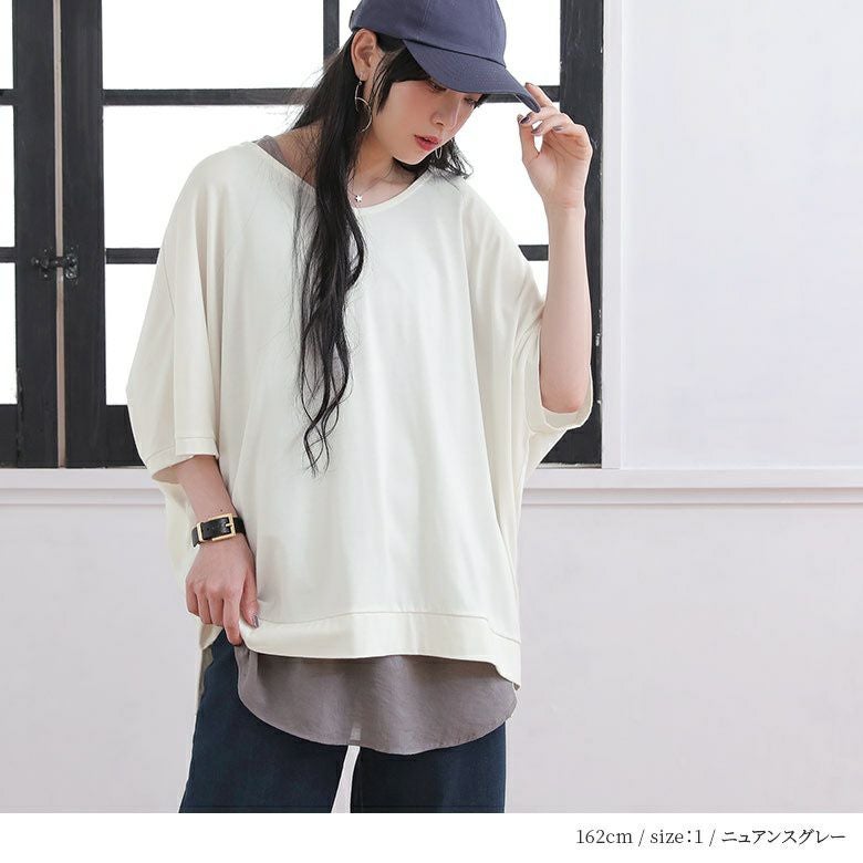 身頃の薄手でさらっとした肌触りのコットン100%カットソー生地×裾部分には程よい透け感のシアー生地をドッキング。これからの季節のレイヤードスタイルに最適な生地感です。