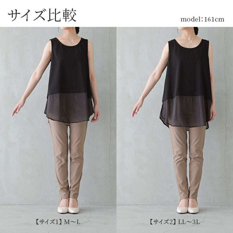 選べるM~3Lサイズ展開!旬コーデが決まる、シアー切替レイヤードタンク♪