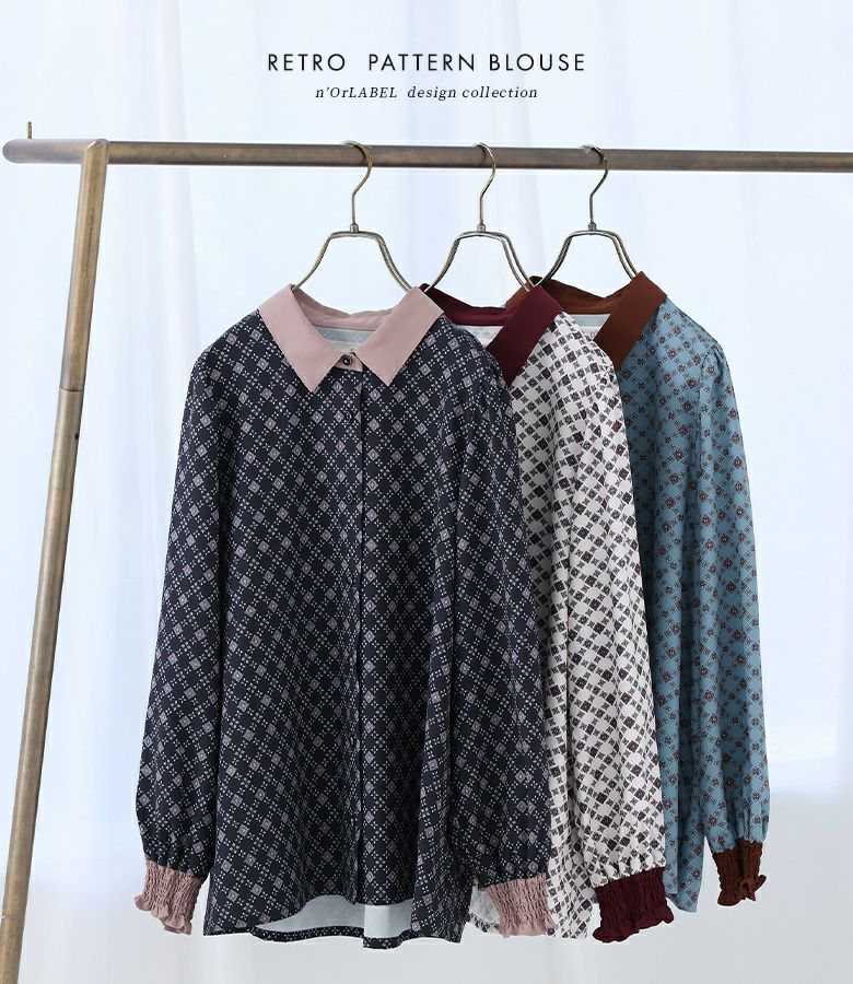 4. 『n'OrLABEL配色襟レトロ柄ブラウス』※メール便可※【5】
