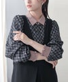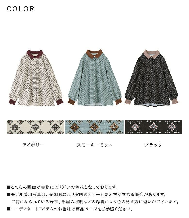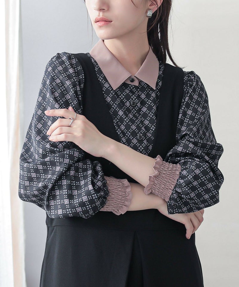 [ID]tkn0419[n'OrLABEL配色襟レトロ柄ブラウス]