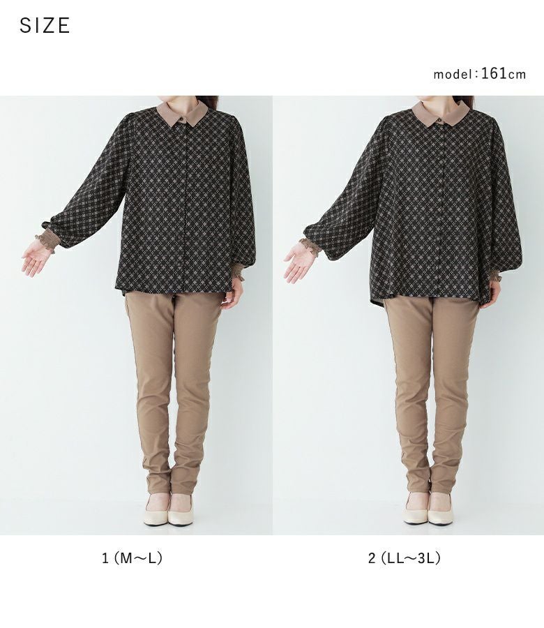 選べるM~3Lサイズ展開!着るだけで雰囲気格上げ、レトロ柄ブラウス♪