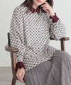 『n'OrLABEL配色襟レトロ柄ブラウス』