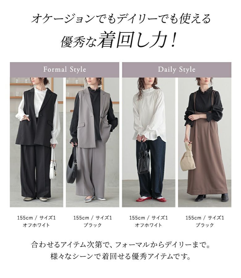 その時のトレンドと、ベーシックを両立させ、落ち着いたデザインで毎日着られる大人カジュアルを提案。