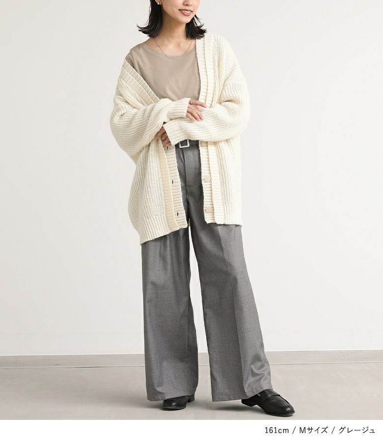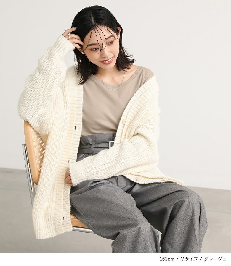 | 【M】 袖丈:手の甲が隠れる位 着丈:ヒップ下少し見える位 腕周り:ジャスト バスト:ややゆったり 全体:スッキリ