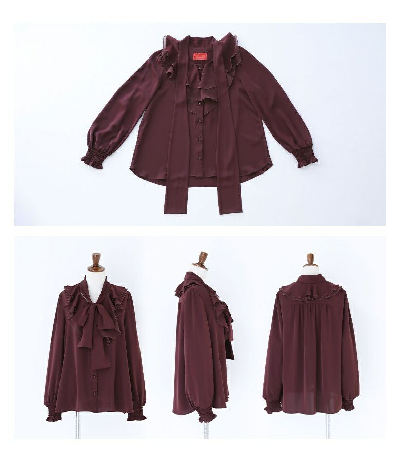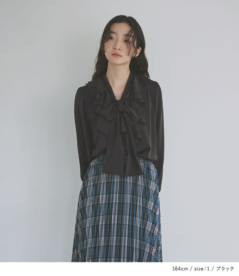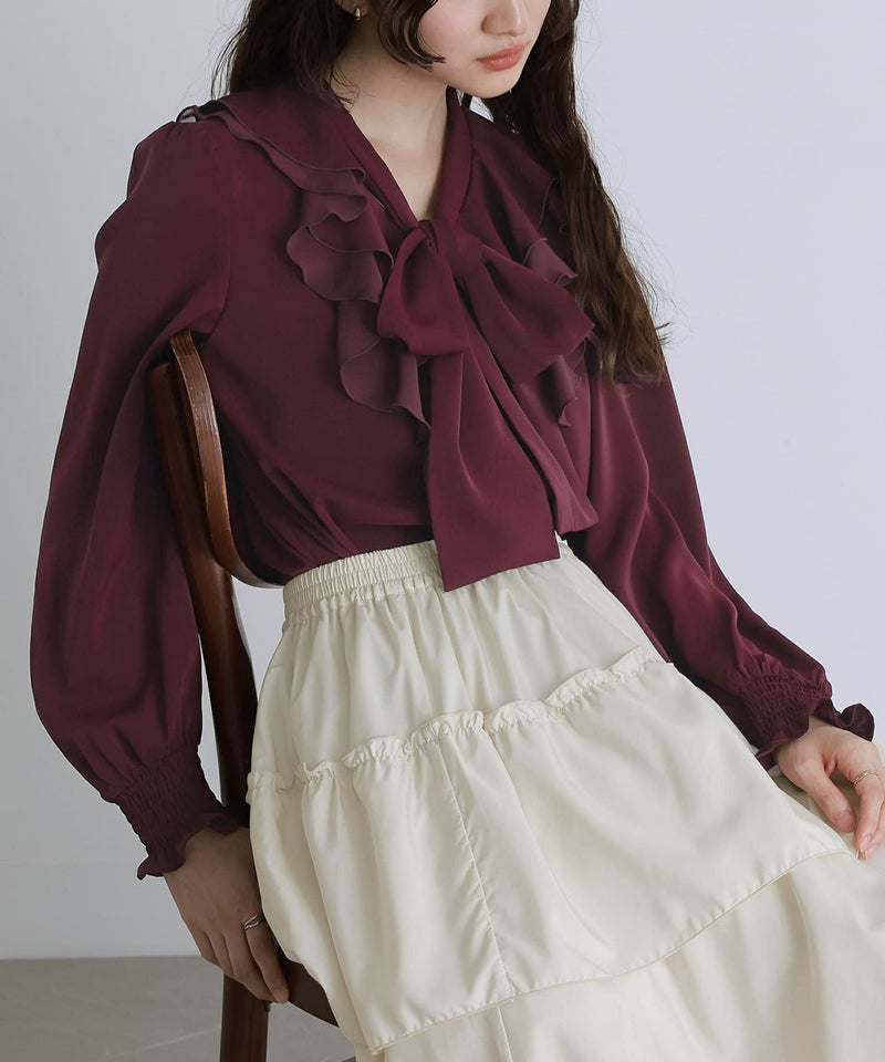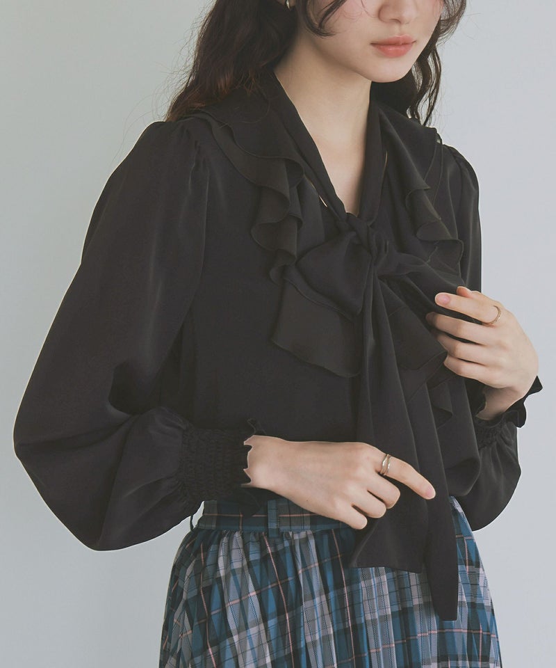 ボウタイ付きのラッフルフリルで、特別な存在感を与えるブラウス。