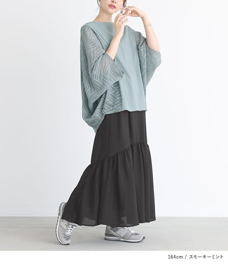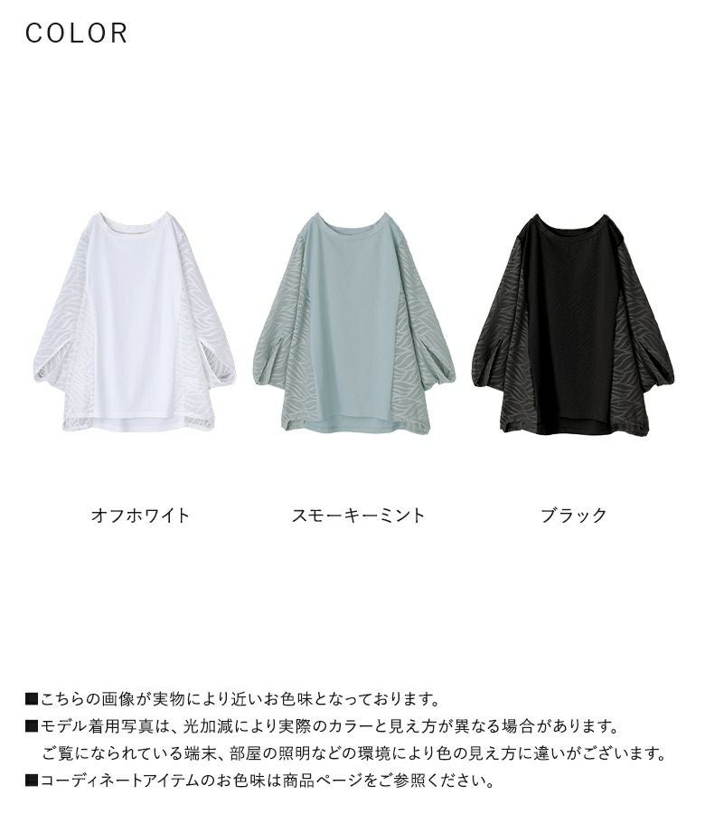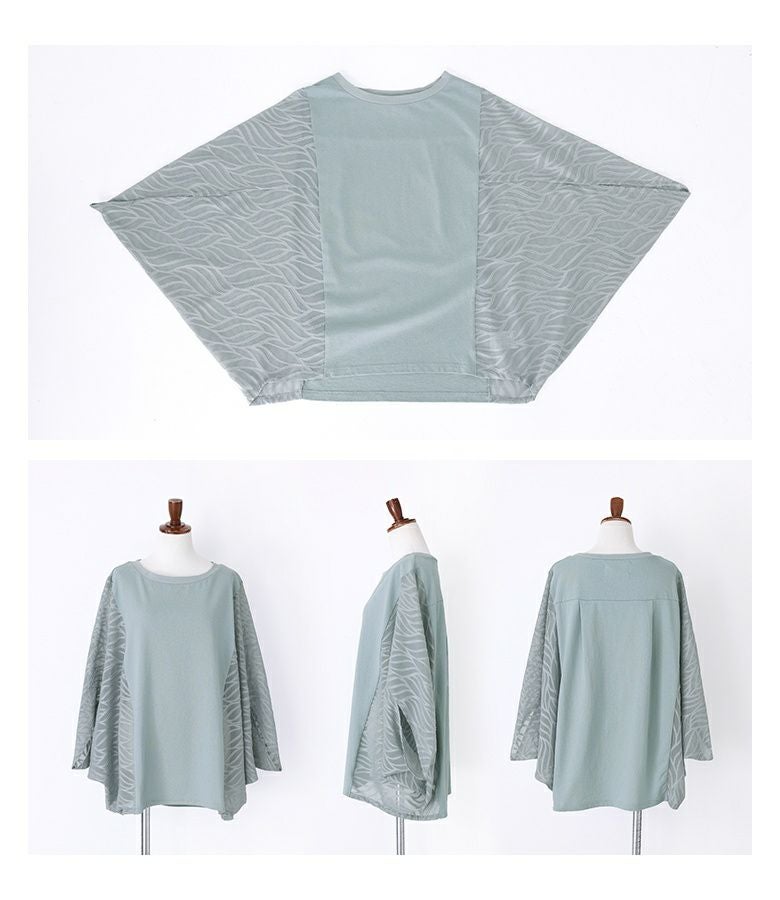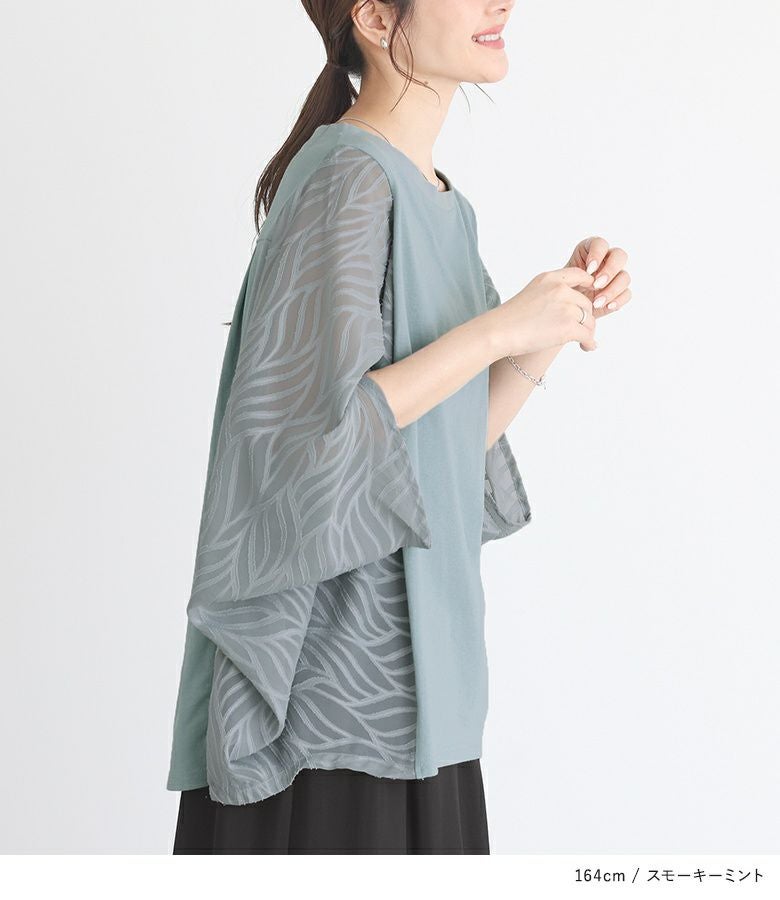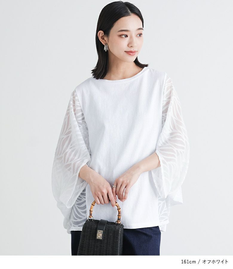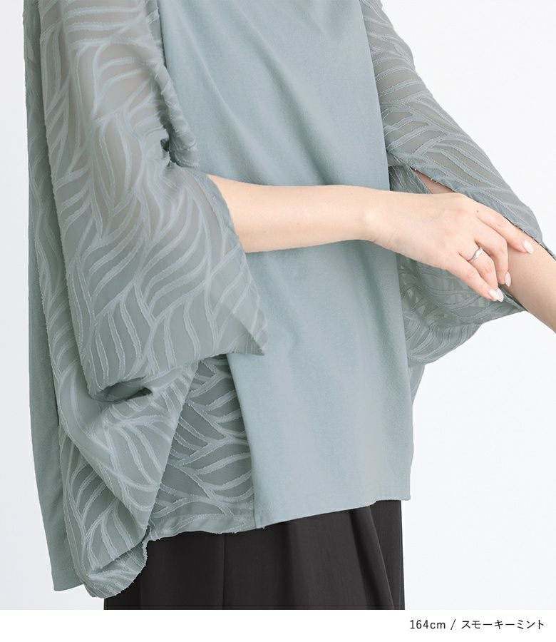 シアー感のあるカットジャカード切替がポイントのドルマントップス。
