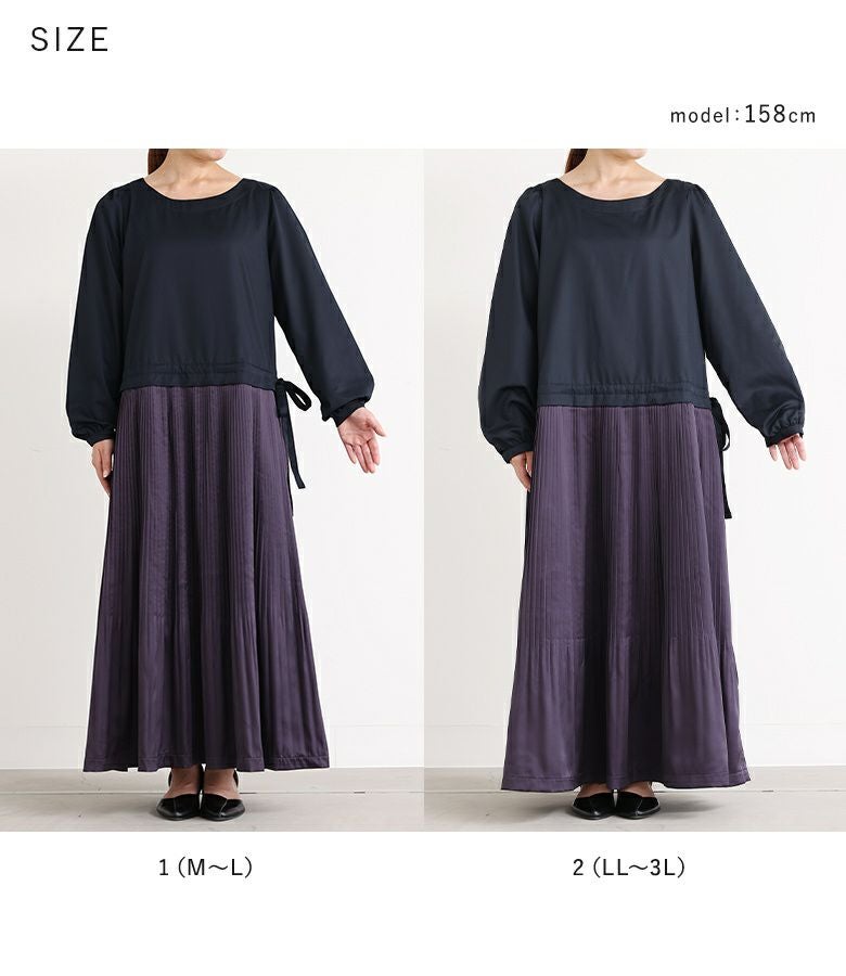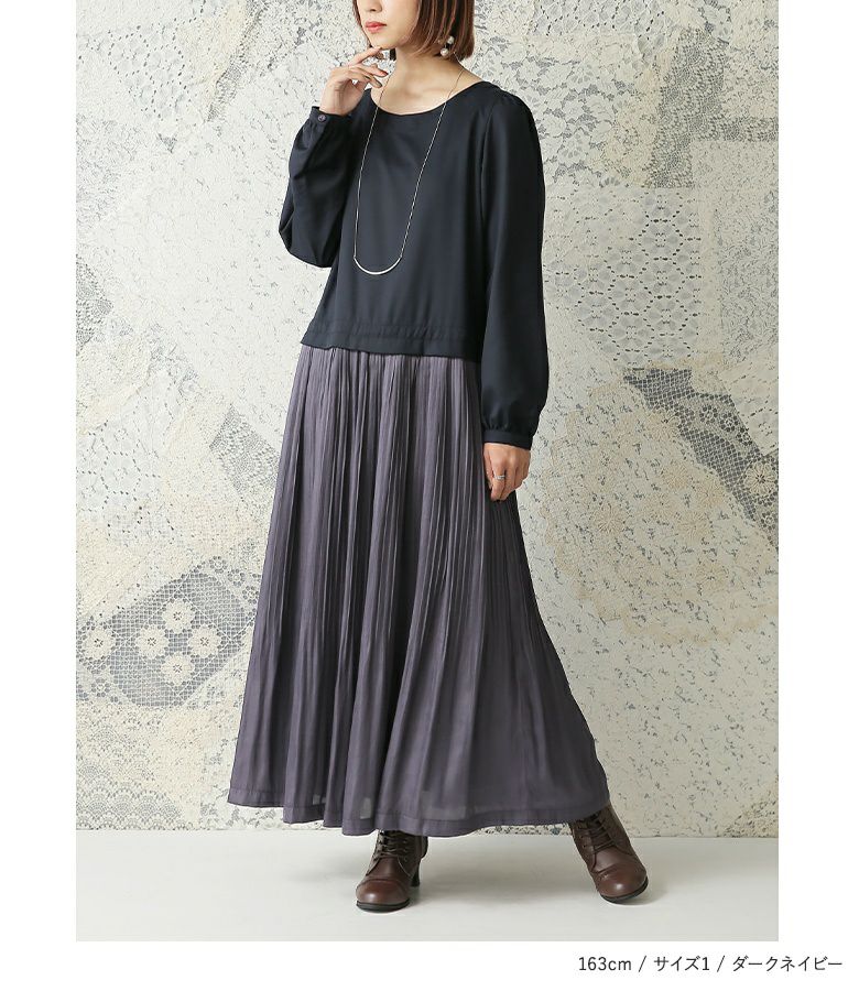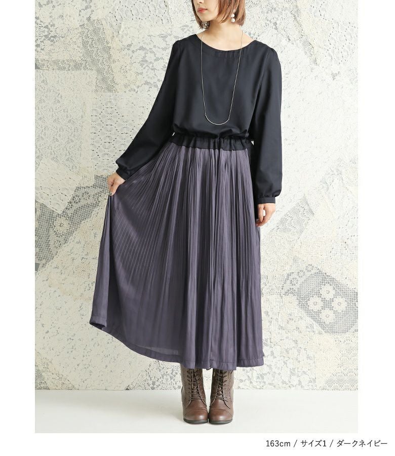 選べるM~3Lサイズ展開!上品なセンスを放つ、サテンプリーツワンピース♪