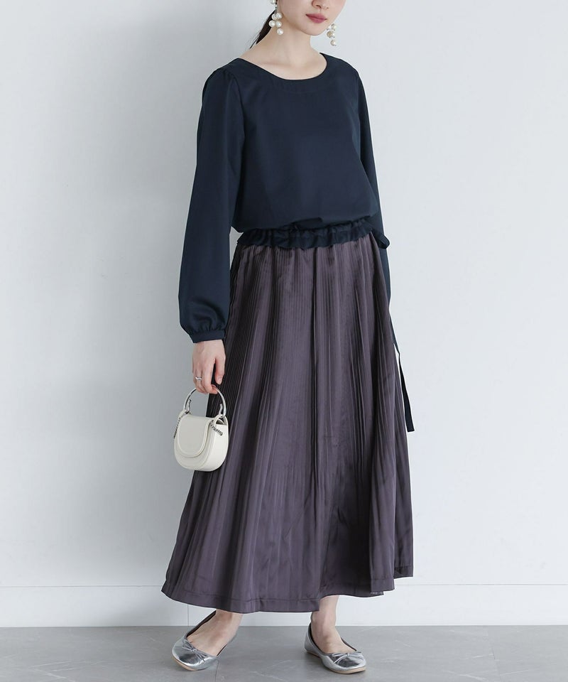 洗練された女性らしさが光る≪somari imagination≫サテンプリーツワンピースです。