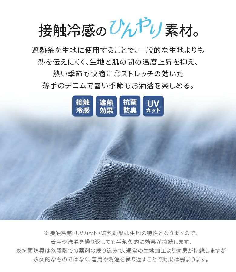 ストレッチの効いた薄手のデニムで暑い季節も着心地ラクにお洒落を楽しめます。
