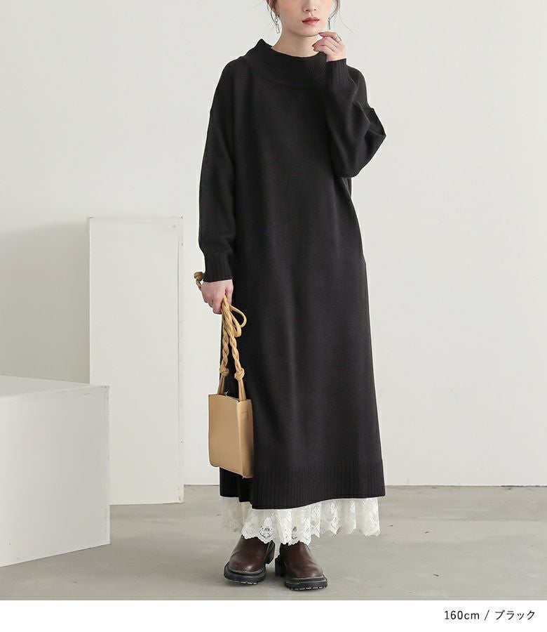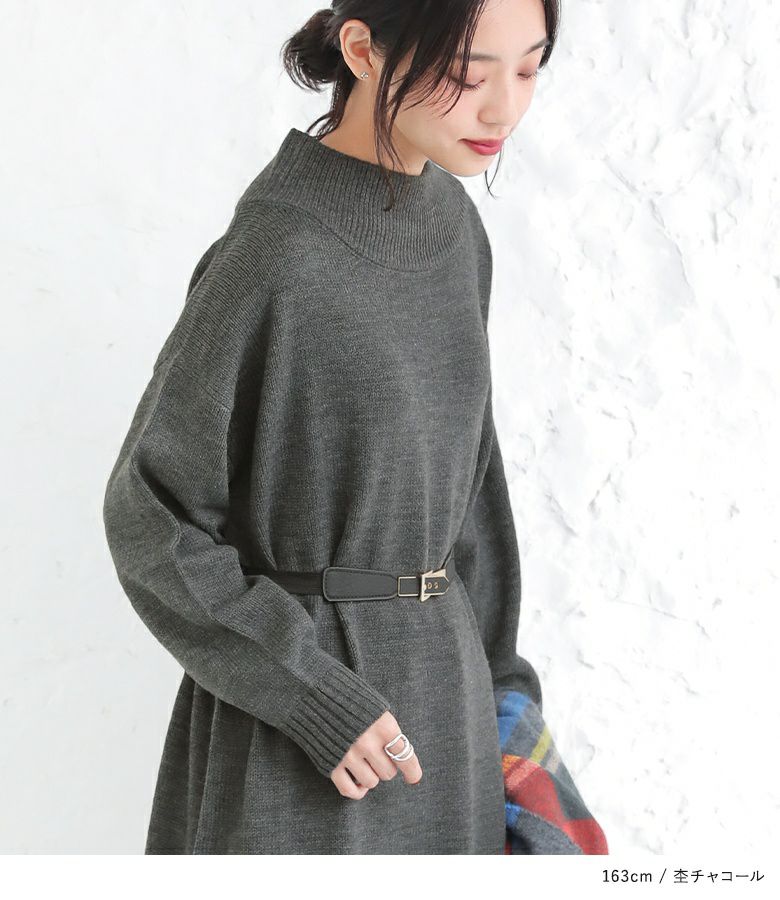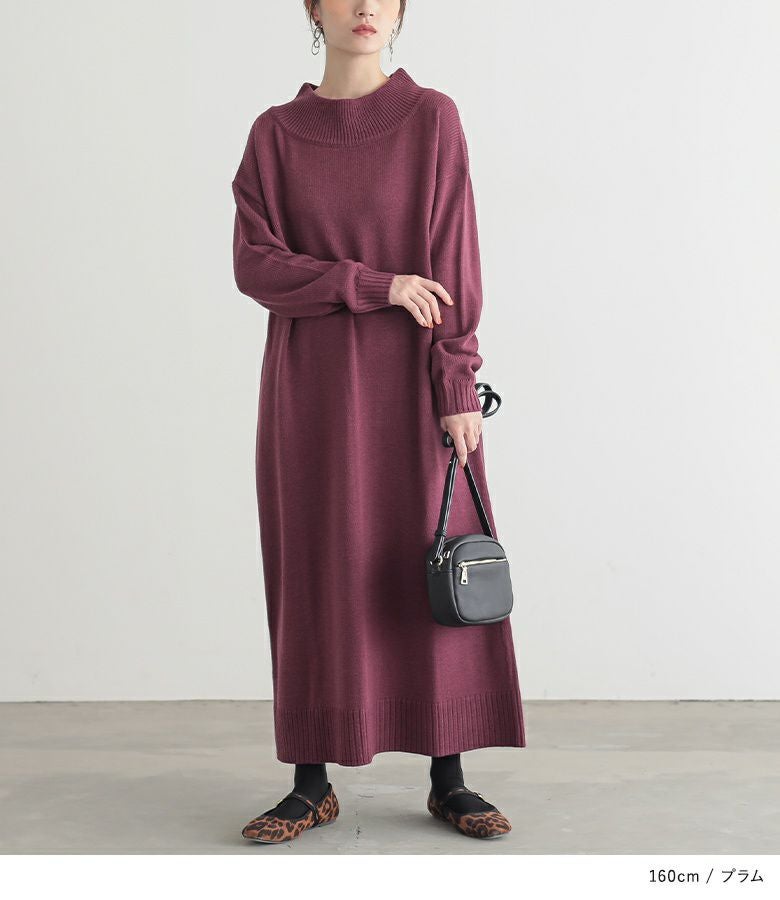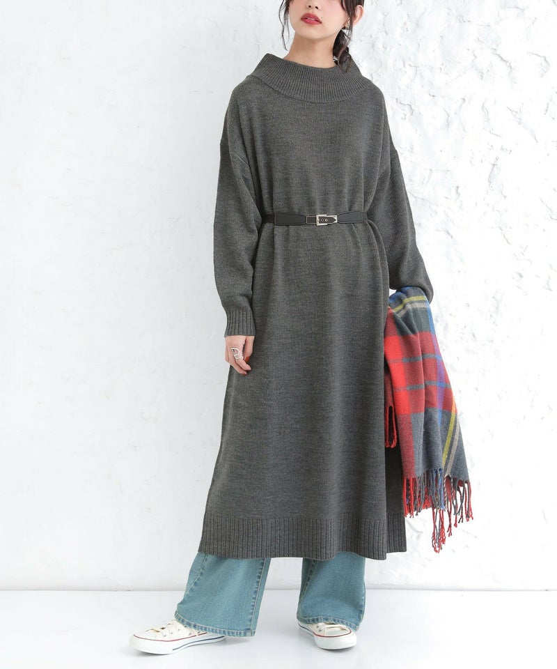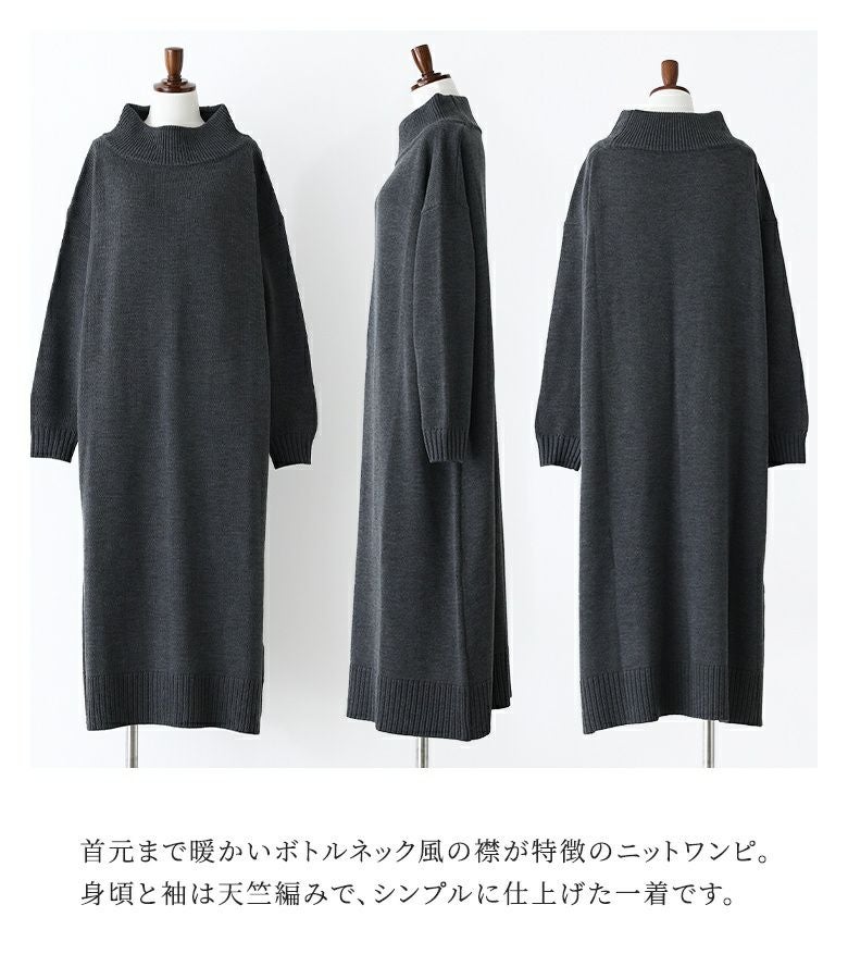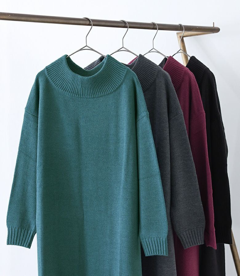 大人の抜け感漂う、ボトルネック風こなれニットワンピ♪