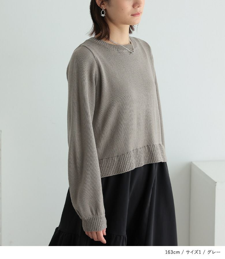 1(M~L)は、ニット部分が窮屈ではありませんが、ジャストなサイズ感で、スカート部分は程よいゆとりをもって着られました。アームホールはぴったりで、バストに沿うサイズ感です。2(LL~3L)は、ニット部分にゆるっと感が出て、綺麗なシルエットで着られました。私の場合は、2(LL~3L)を選びます。