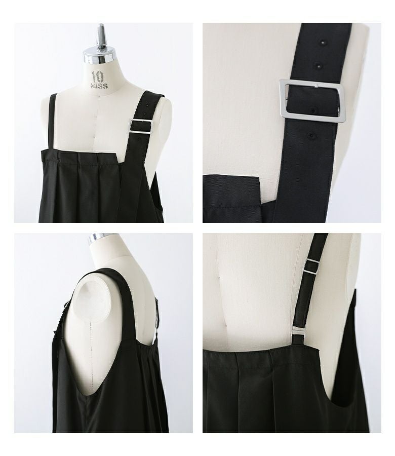 左右で太さの異なる調節可能な肩紐と、大きめのバックルがポイントになるデザイン。開閉アレンジができる裾のリングドットボタンで、ひと味違うお洒落を楽しめます。