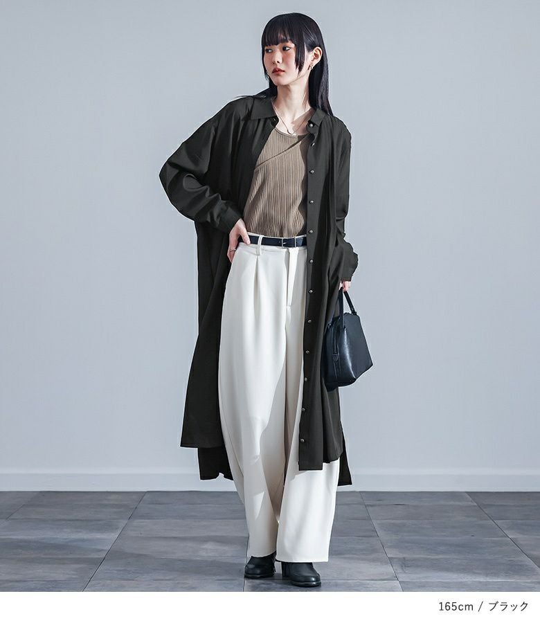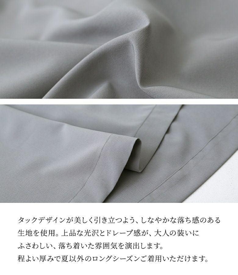 タックが綺麗に入るように落ち感のある滑らかな肌触りの生地を使用。ロングシーズン着こなしを楽しめる素材感です。