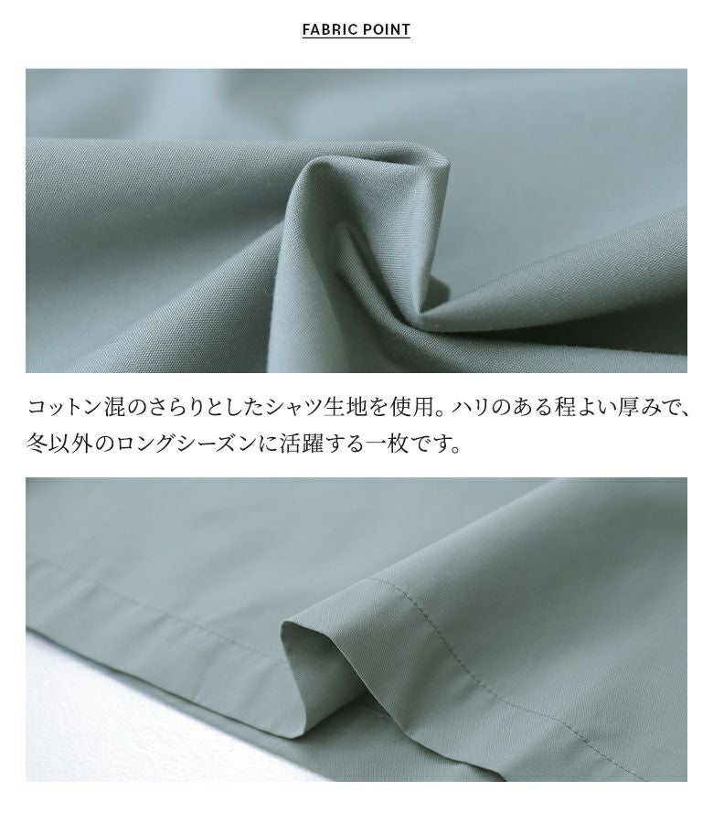 コットン混のさらりとしたシャツ生地は、ハリのある程よい厚みの生地で、ロングシーズンお洒落に活躍します。