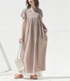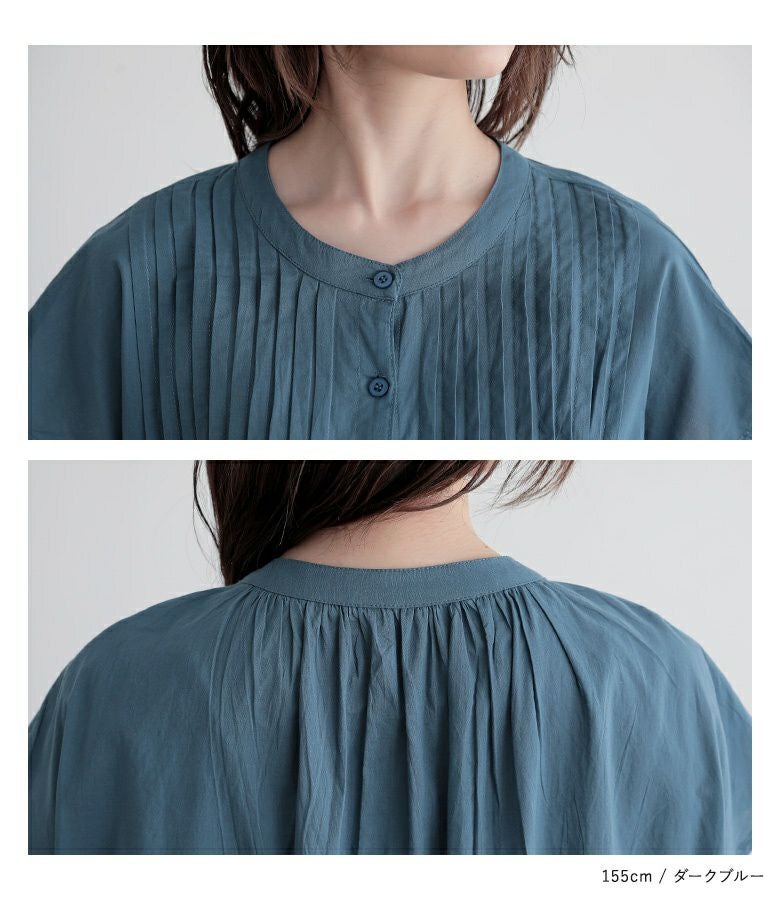 胸元のタックデザインですっきり見え&フレンチスリーブで柔らかな印象に。Aラインシルエットが身体のラインを拾わず、ゆるっとお洒落な着こなしを実現します。
