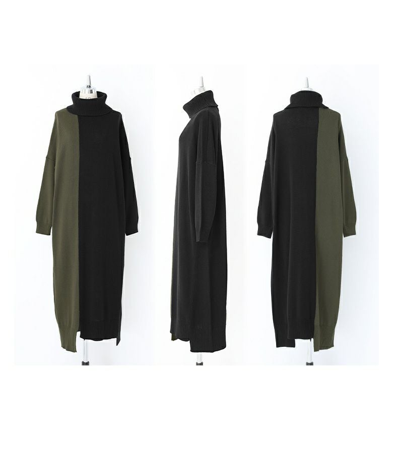 『kOhAKU配色アシメタートルネックニットワンピース』
