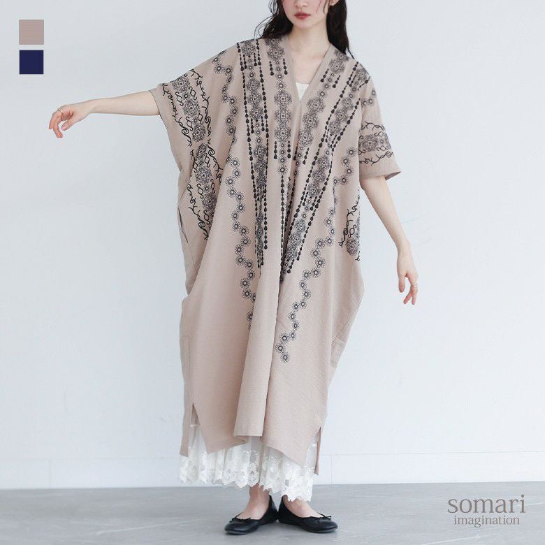 5. 【送料無料】『somari imagination刺繍デザインカフタンワンピース』【メール便不可】【20】