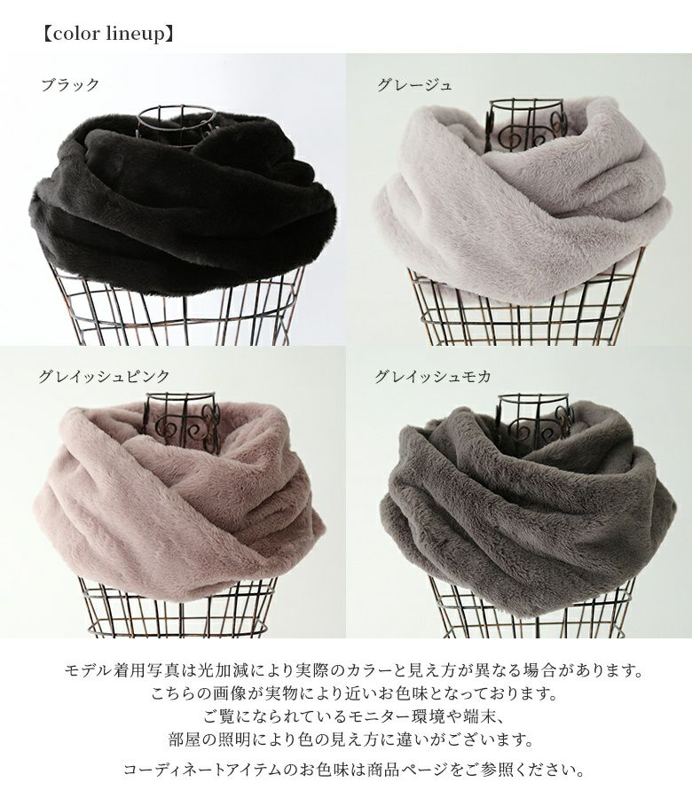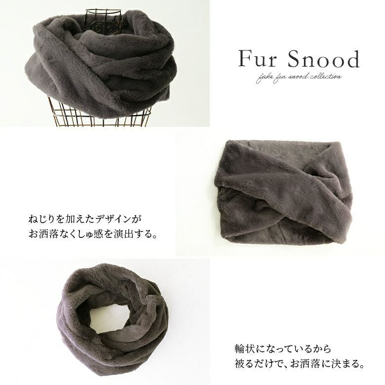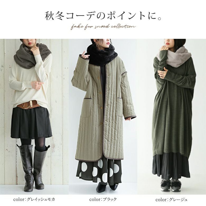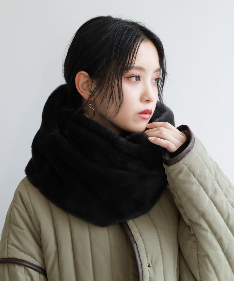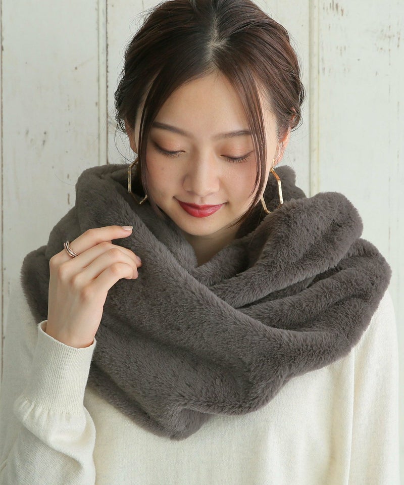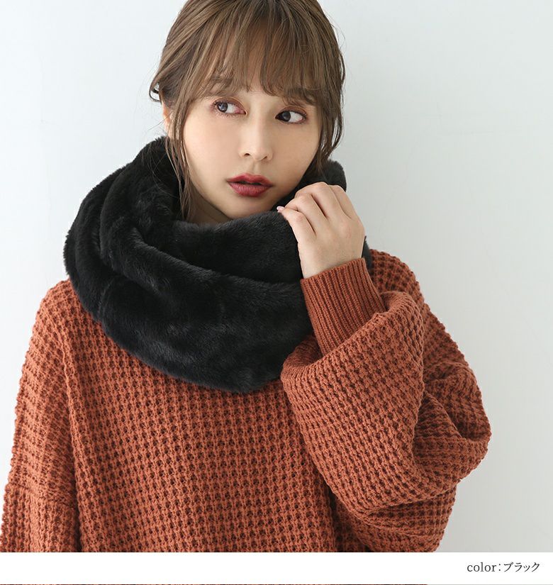 秋冬コーデのポイントに最適、シンプルファースヌードです。