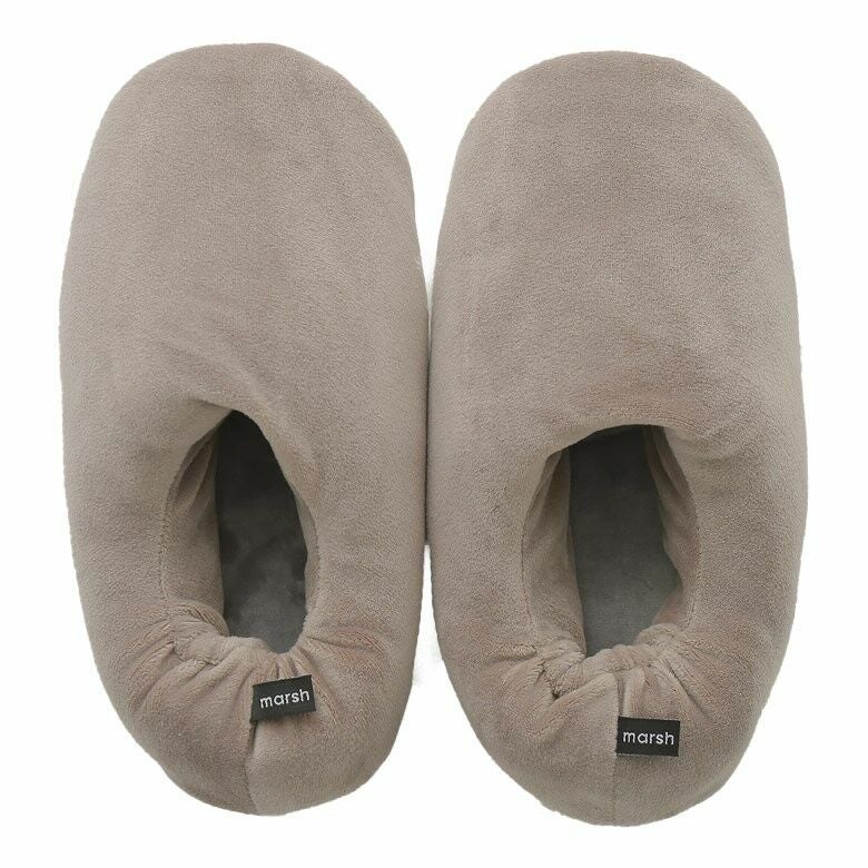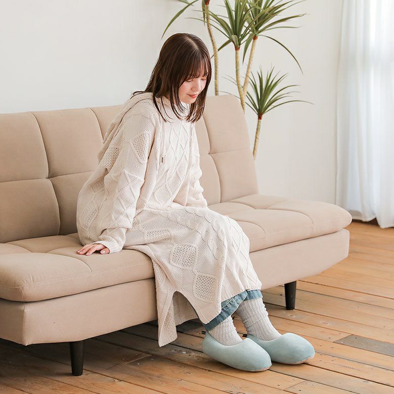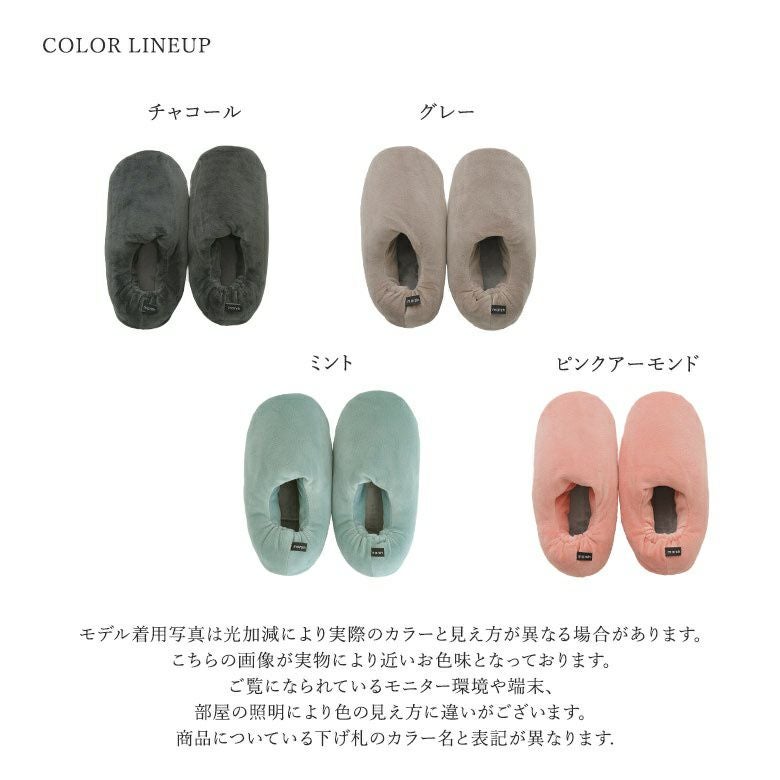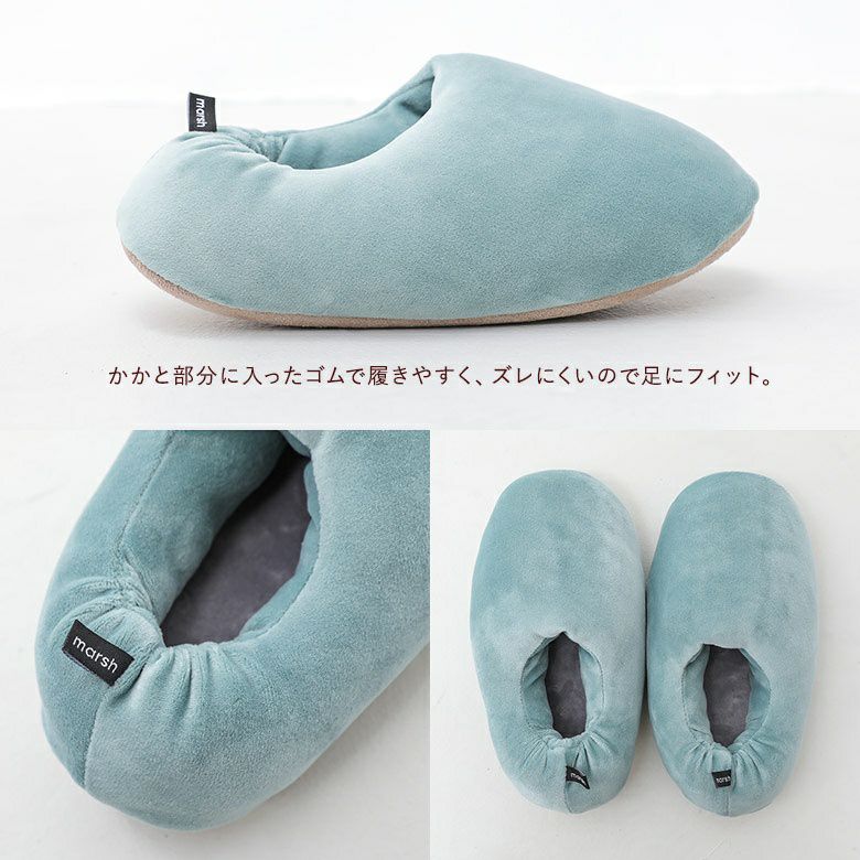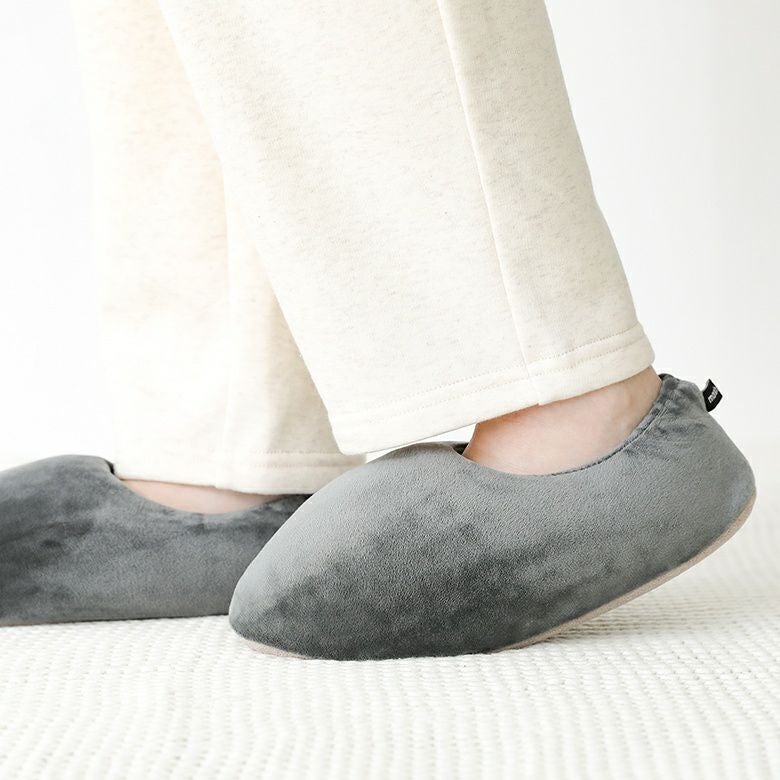 伸縮性のあるなめらかな生地に綿をたっぷりと詰め、もっちりとしたマシュマロのような肌触りに。アウトソールはセームレザー調の生地を使用し、パタパタ音がしにくいところも嬉しいポイントです。