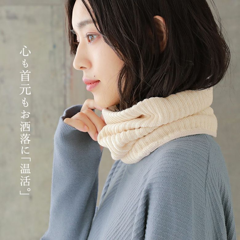 お洒落に温活できる、シルク&コットン二重編みネックウォーマーです。