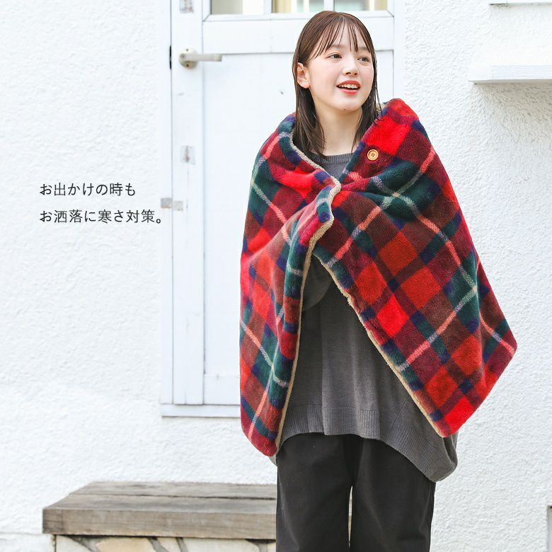 【新色登場】『チェック柄フェイクファーポンチョ』
