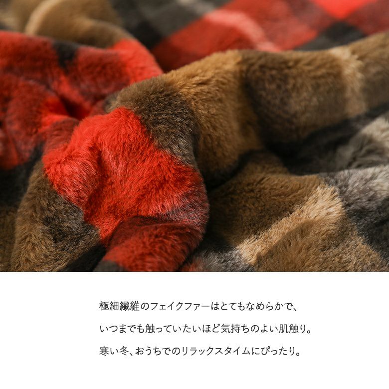 4. 【新色登場】『チェック柄フェイクファーポンチョ』【メール便不可】【70】