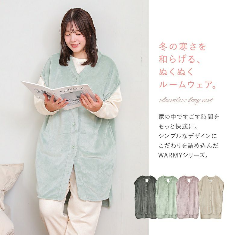 【新色登場】『WARMYぬくぬくノースリーブロングベストルームウェア』