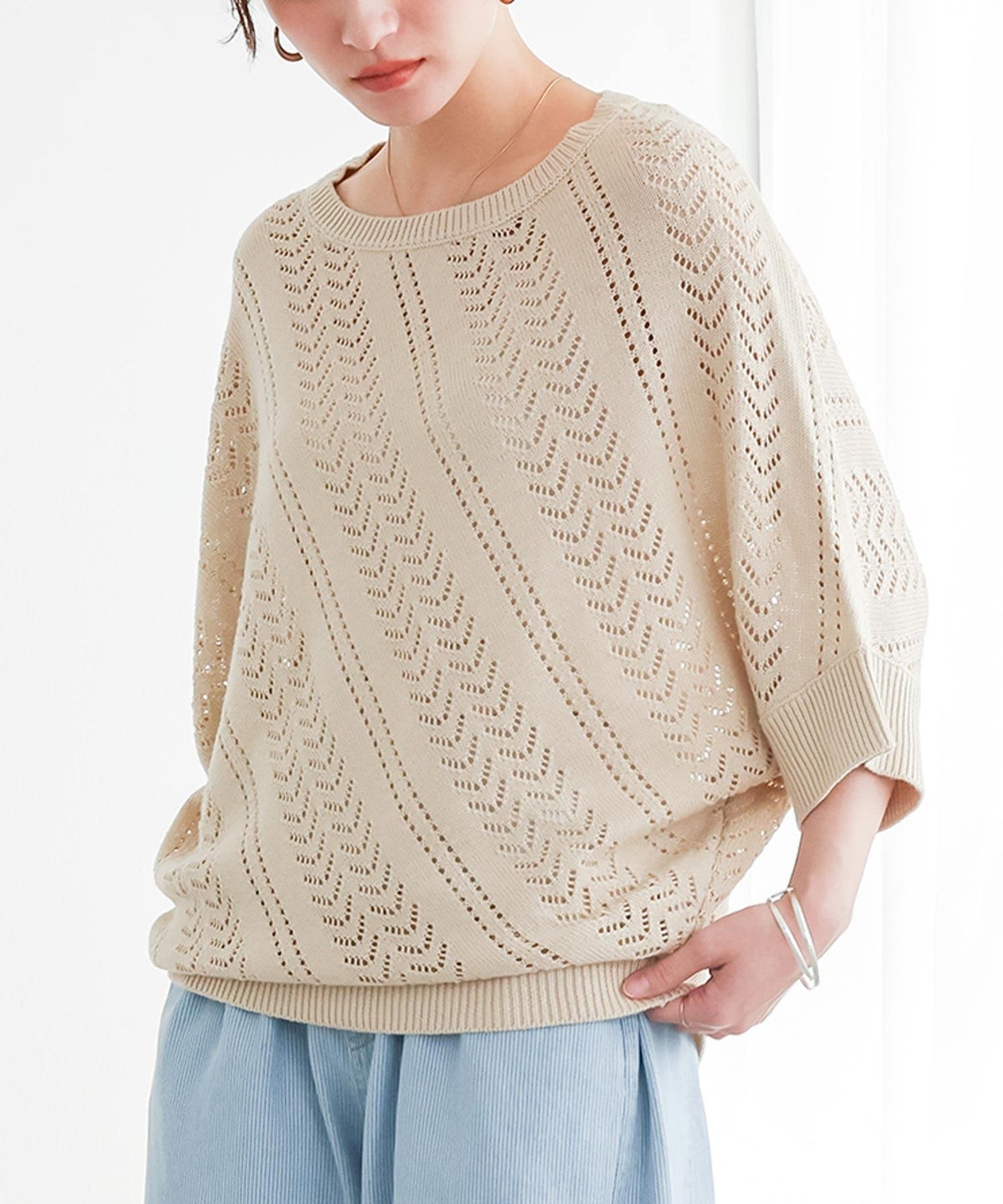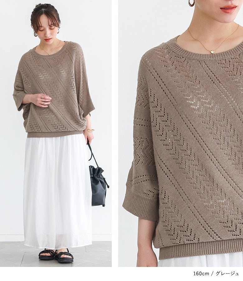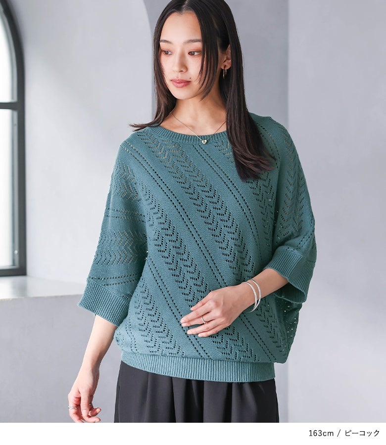 他の画像を見る デザインも着心地も欲張る♪透かし編み変形ニット。 『n'OrLABEL透かし編みドルマンニット』【メール便不可】【20】 ¥ 4,590 税込 販売開始前です。 販売期間 2026/03/15 10:00 〜 2027/03/04 23:59 4.76 (34)