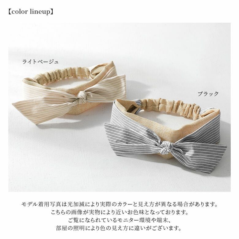 『ストライプ柄リボンヘアバンド』