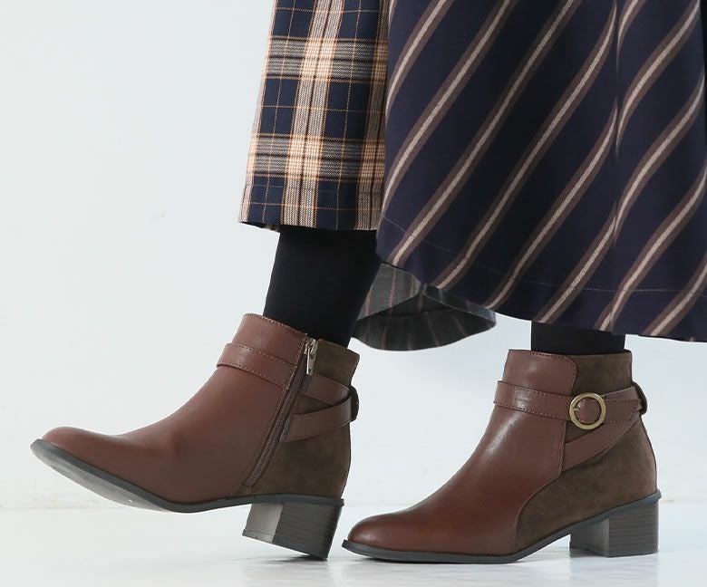 安定感のある太ヒールとクッション付きで歩きやすいのはもちろん、サイドファスナーで着脱も楽にできる、便利な一足です♪