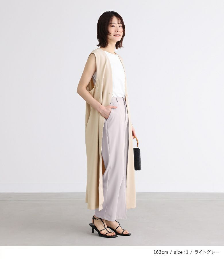 縦ラインを強調するセンタープレスデザイン。ウエスト周りがダボつかない、スッキリ魅せを叶えるシルエットは当店オリジナルパターンだからこそ。