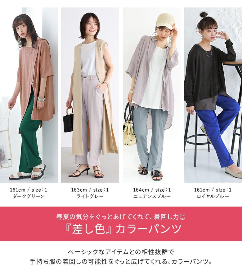 さらりとした、ややストレッチの効いた上質感漂うツイル生地は、シーンを選ばずオンオフ着られる素材感が嬉しいポイント♪色鮮やかなカラーパンツは、穿くだけでコーデに新鮮な表情をプラスします。
