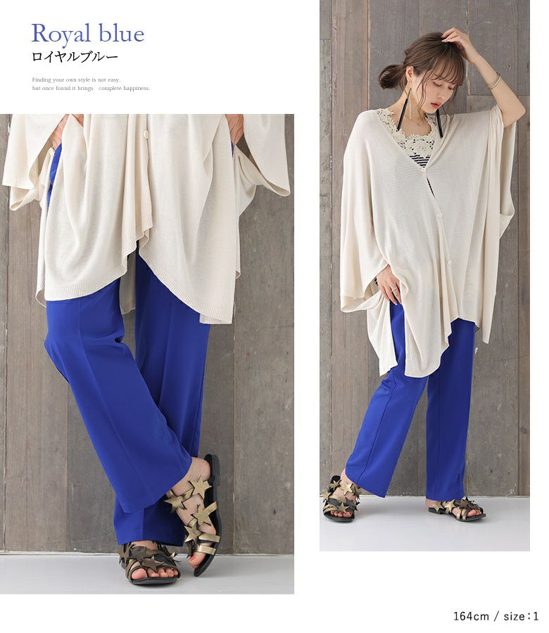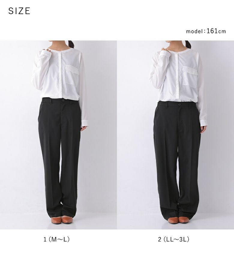 1(M~L)は、ウエスト・太もも周りはフィット感がありますが、膝から下は綺麗なシルエットで穿けました。ワンピースや丈の長いトップスと合わせて穿くのがオススメです。2(LL~3L)は、丈が少し長めだったので、ベルトで留めるかヒールで合わせるのがオススメです。