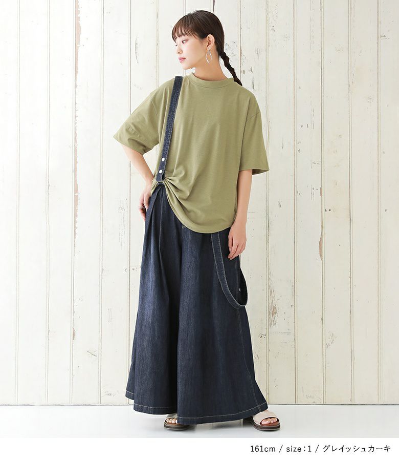 シンプルなアイテムから柄物アイテムまで、幅広くコーディネートしていただけます。サロペットなどのインナーとしても使える、着回しに活躍する一枚です。