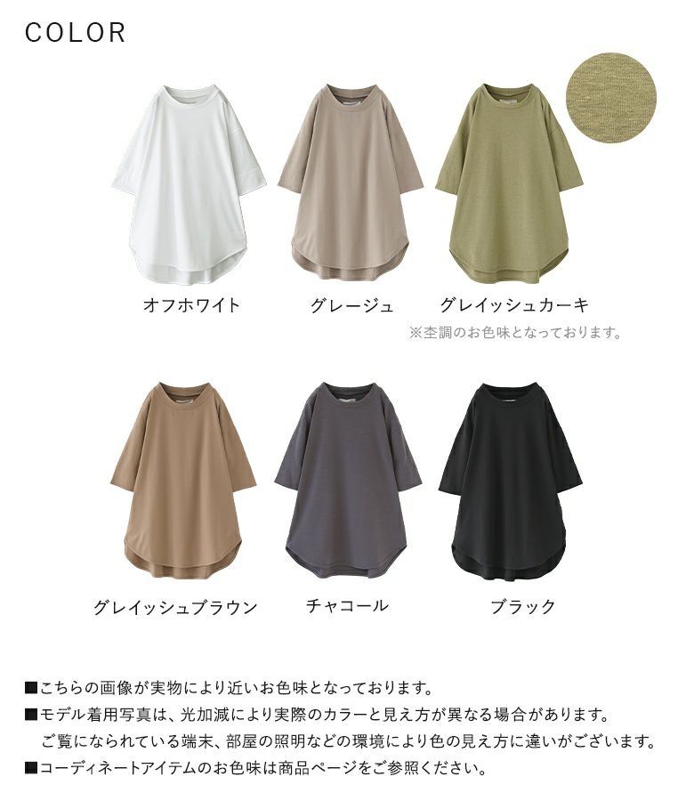 柔らかく伸縮性のあるコットン混のカットソー生地です。楽な着心地で春夏シーズンの着回しに重宝します。
