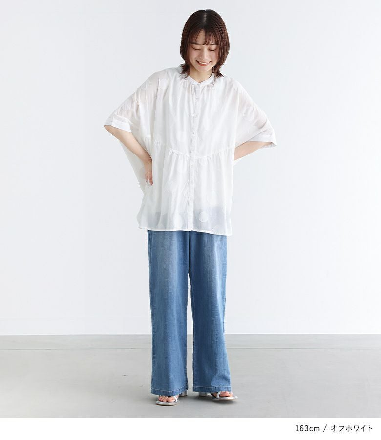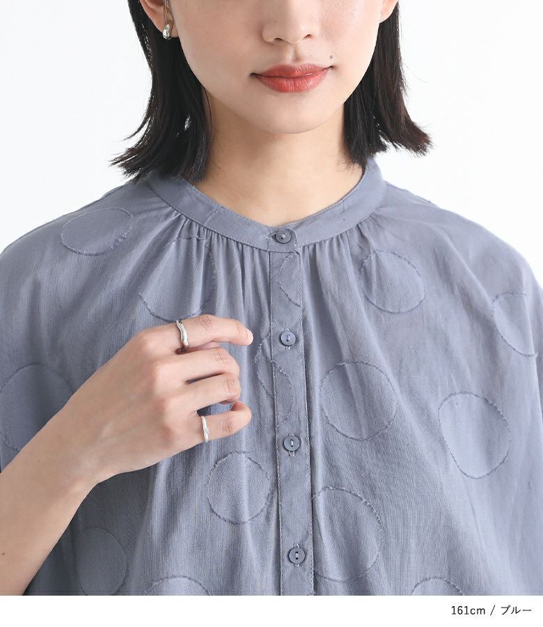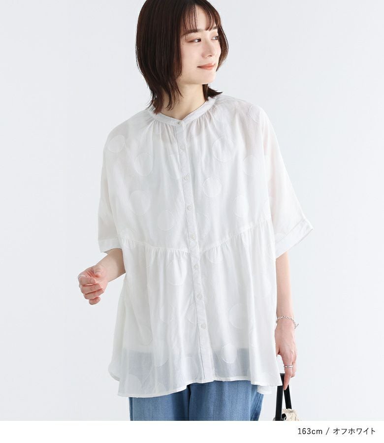 【40%OFF】大きめドット柄のカットジャカード生地がお洒落に導くブラウス。