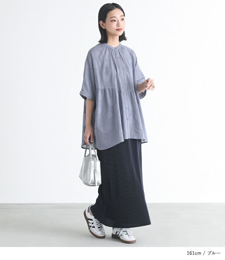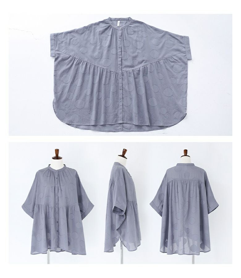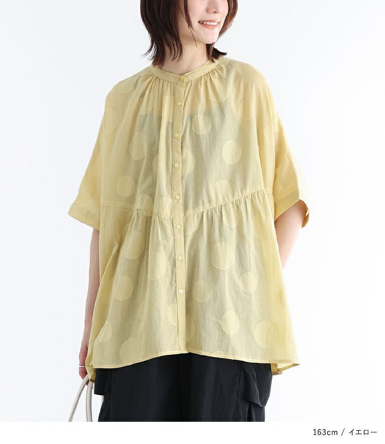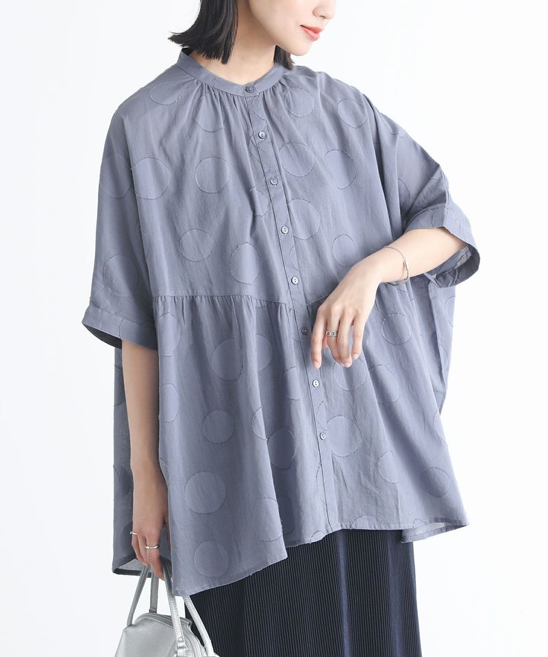 『ドット柄カットジャカードシャツブラウス』