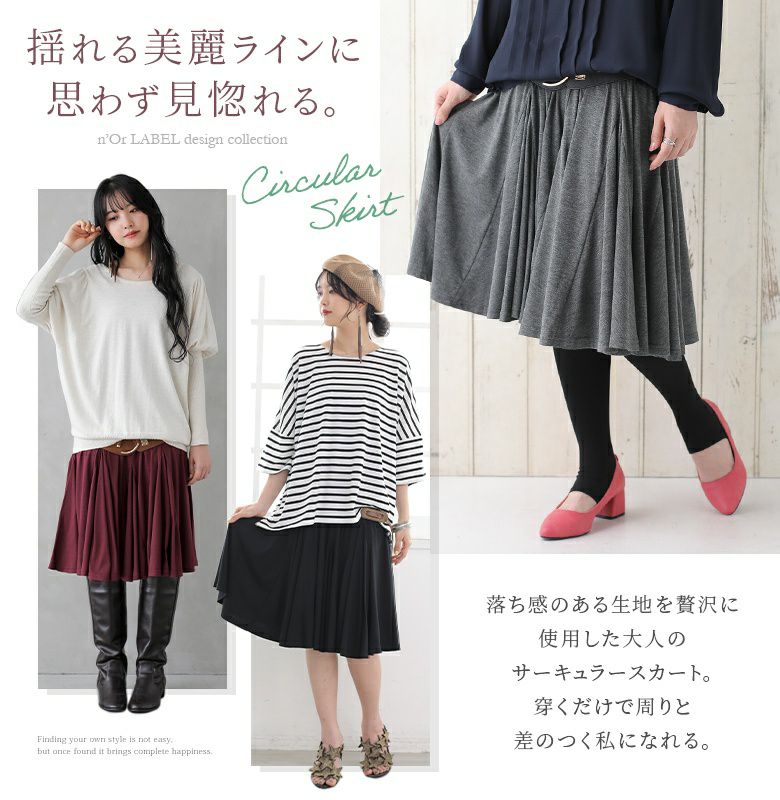 落ち感のある生地が動くたびひらりと揺れるサーキュラースカート。