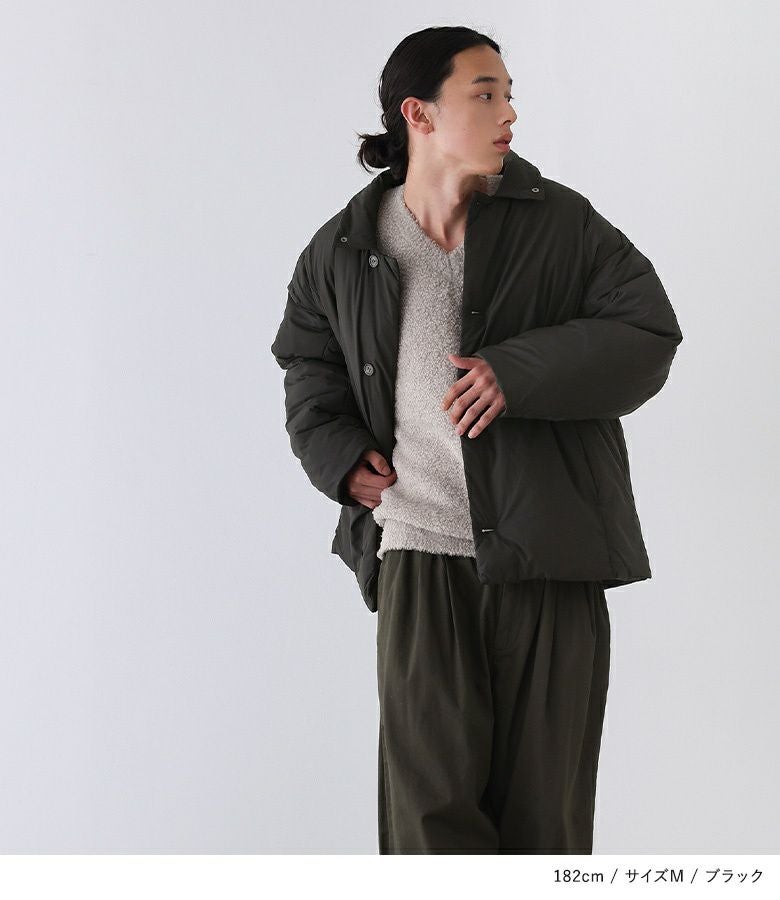 ゆったりとしていて、しっかりしたセーターなどを中に着ても問題ありません。ボタンで袖周りの調節ができ、便利です。