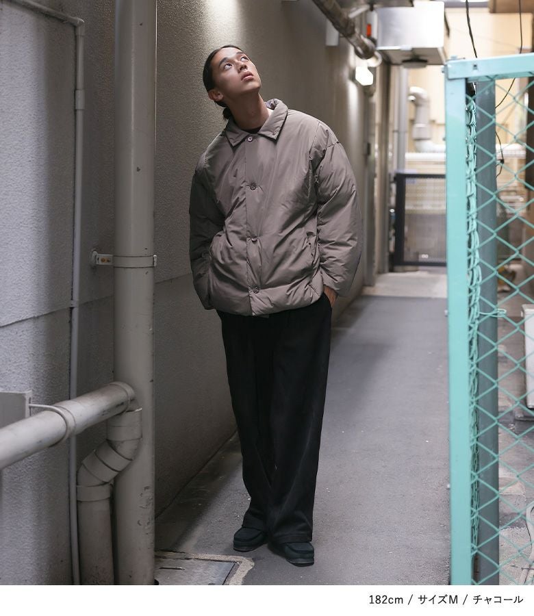 中にスウェット等を着用するとちょうどいいと思います。着丈もちょうどいいのでこちらのサイズを選びます。