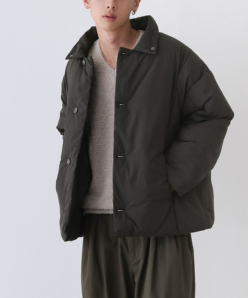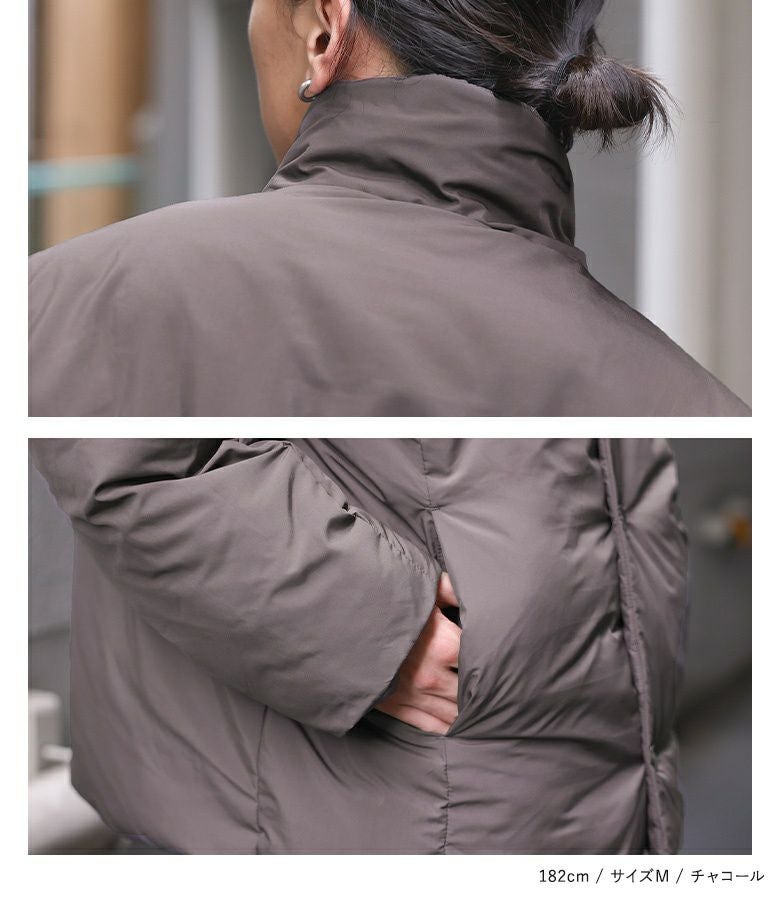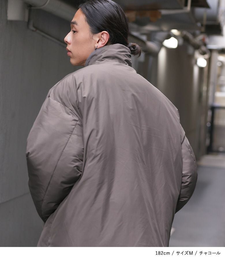 中にスウェットなどを着用するとタイトになると思います。着丈も少し短い感じです。
