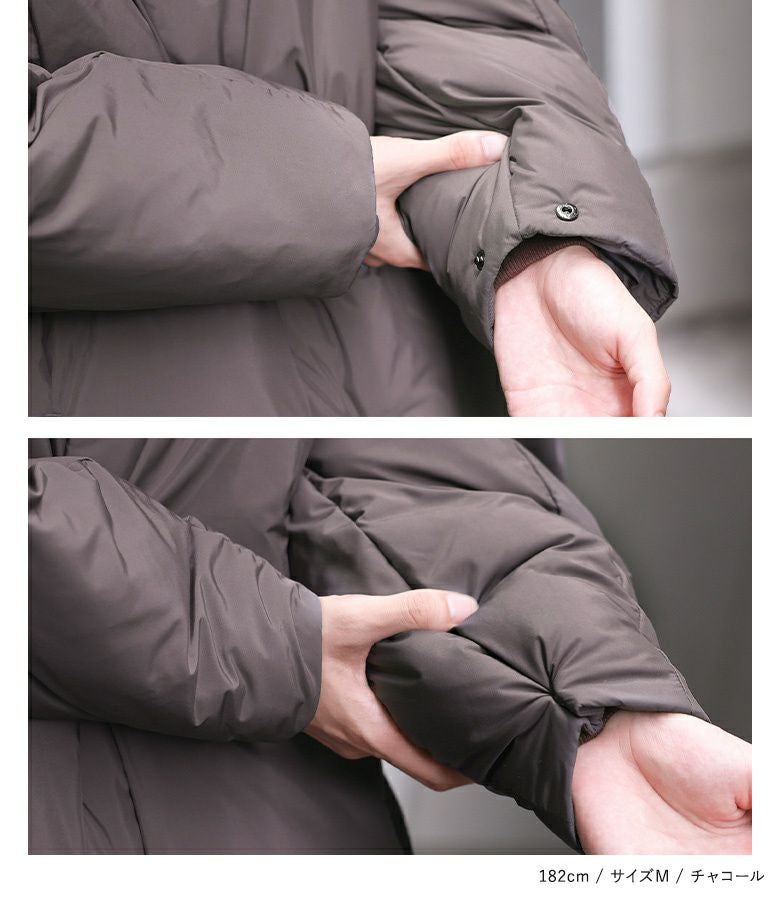 全体的にゆとりがあり、スウェットの上でも楽に着用することができました。袖はスナップボタンがあり手首でとまります。