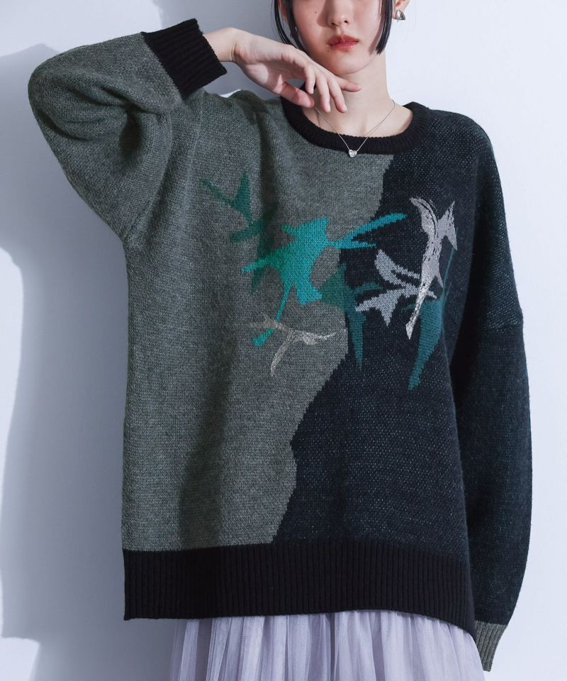 『kOhAKU配色箔プリントアート柄ニット』