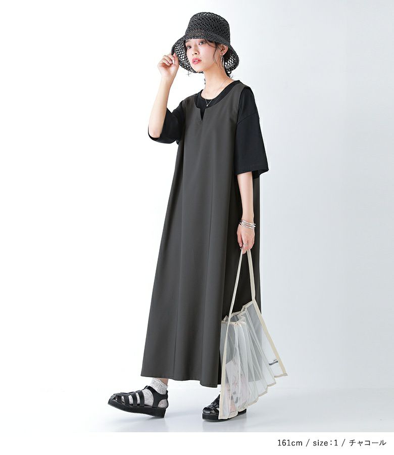 他の画像を見る 【40%OFF】選べるM~3Lサイズ展開!着回し広がるジャンスカ×Tシャツ2点セット♪ 『n'OrLABEL前後2wayジャンスカワンピ×Tシャツセット』※返品交換不可※【メール便不可】【30】 定価 ¥ 4,980 のところ ¥ 2,987 税込 4.40 (5)